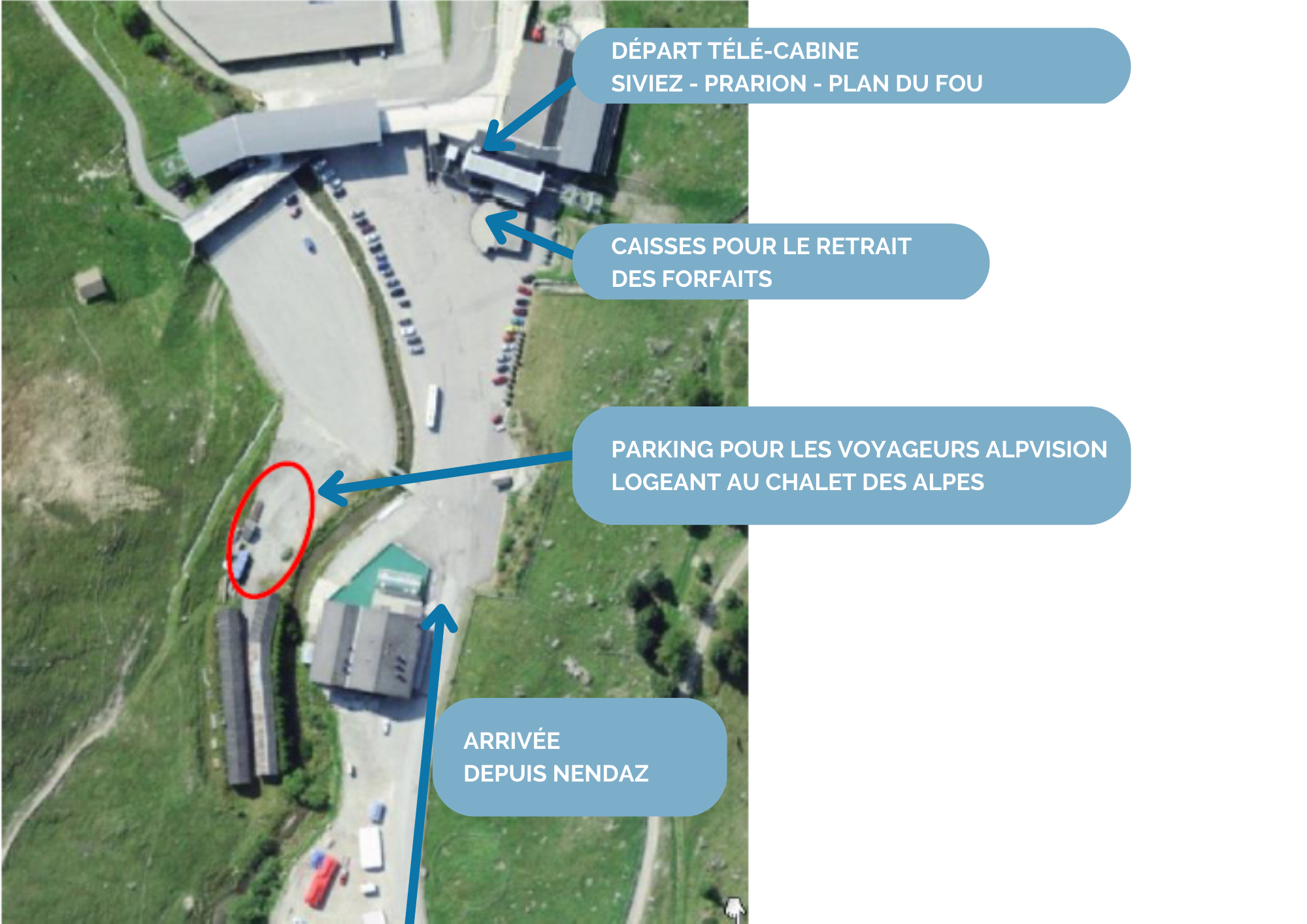 Prenez la remontée mécanique Siviez-Plan-du-fou, restez dans la cabine qui monte au plan du Fou et redescend à Prarion (où se trouve votre logement)