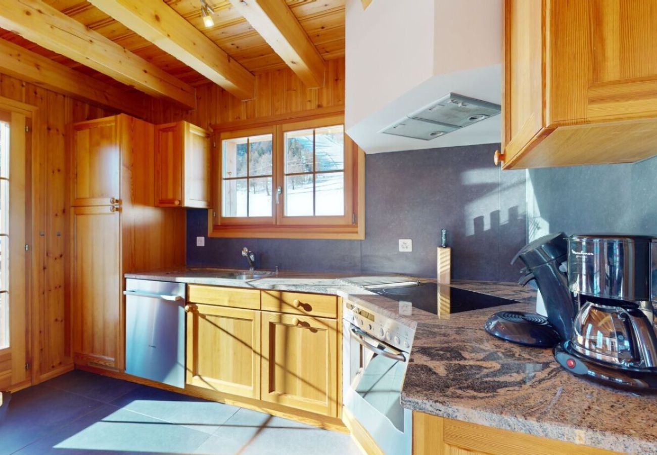 - Voll ausgestattete Küche: Kühlschrank, Backofen, Mikrowelle, Nespresso-Kaffeemaschine und eine Kaffeemaschine (Filter 4), Induktionskochfelder, Geschirrspüler. Raclette- und Fondue-Geräte stehen zur Verfügung.