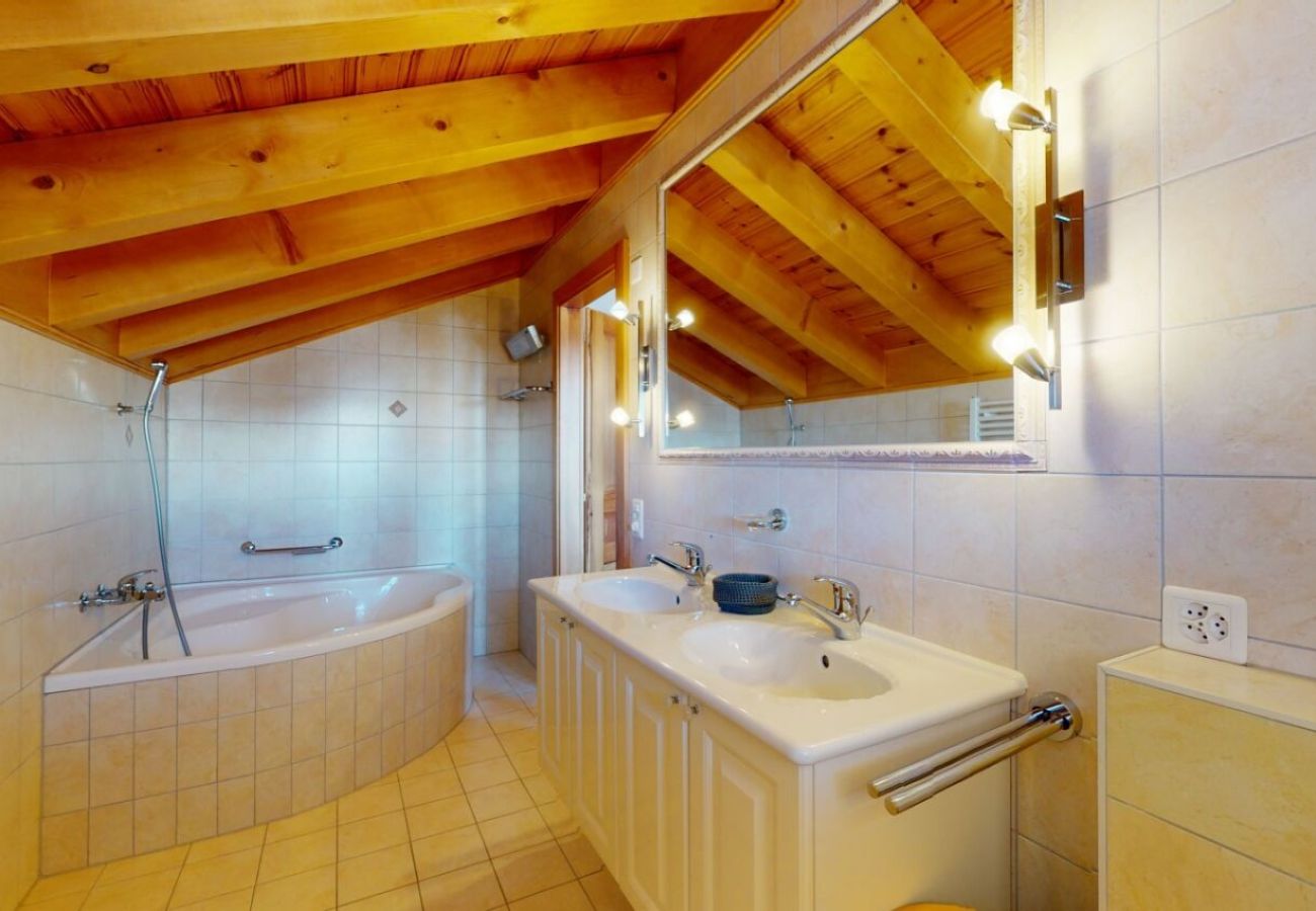 - Badezimmer: 1x mit Badewanne, WC und zwei Waschbecken, 1x mit Dusche, Waschbecken, WC und Handtuchtrockner, 1x mit Badewanne, Doppelwaschbecken, WC und Handtuchtrockner.