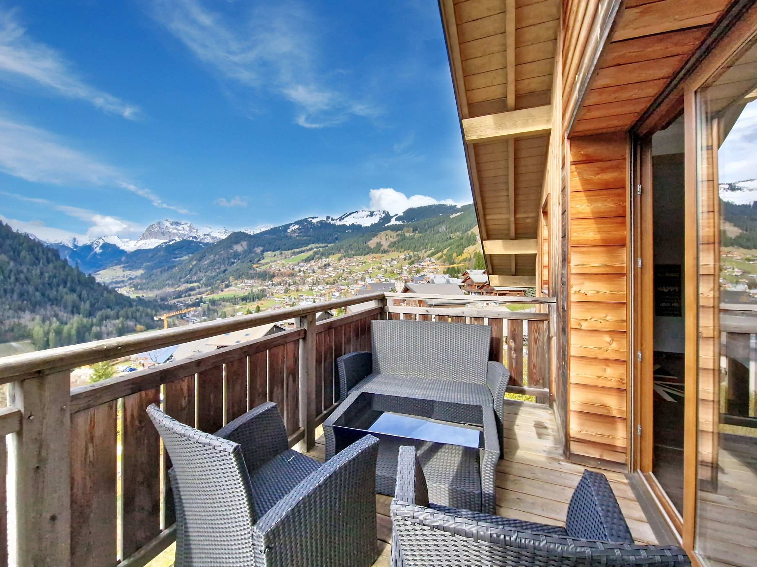 - Außen: Balkon mit Blick auf das Tal von Abondance