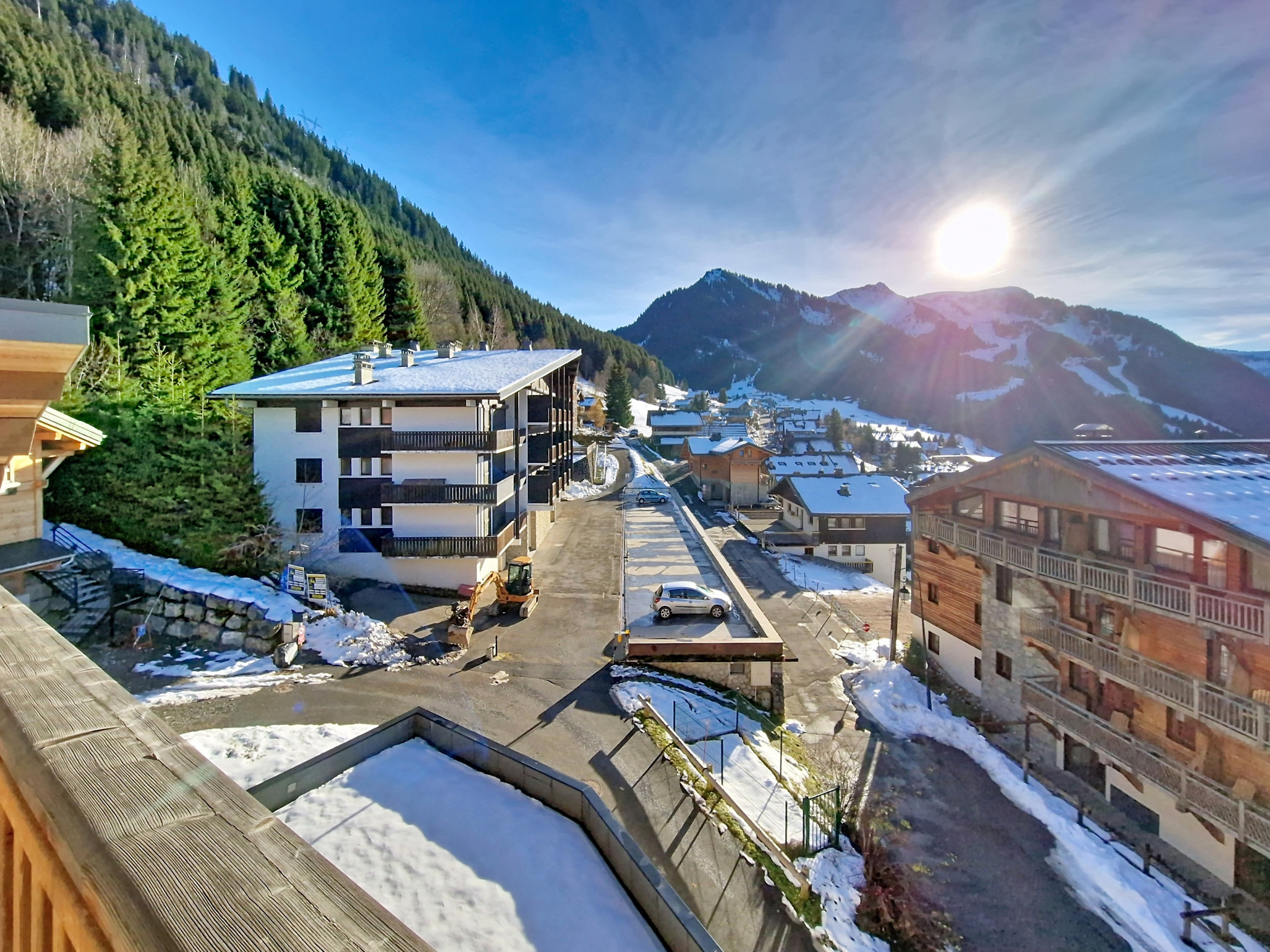 - Außen: Balkon mit Blick auf das Tal von Abondance