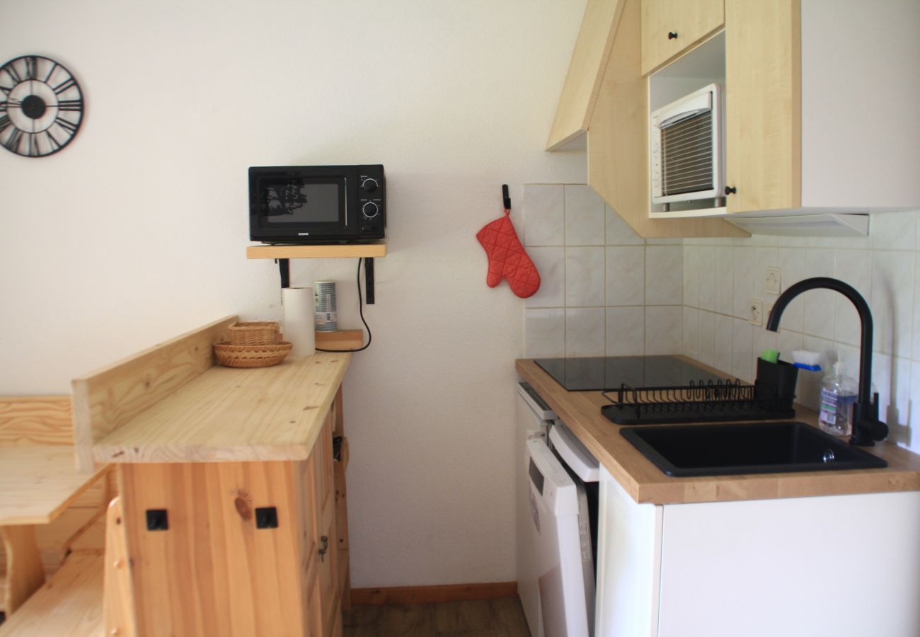 Komfortable 2-Sterne-Wohnung im 1. Stock mit 24 m2. Sonniges Wohnzimmer im Sommer, Flachbildschirm mit Kabel-TV. Offene Küche ausgestattet mit Ceranfeld, Kühlschrank, Filterkaffeemaschine, Backofen, Wasserkocher und Toaster.
