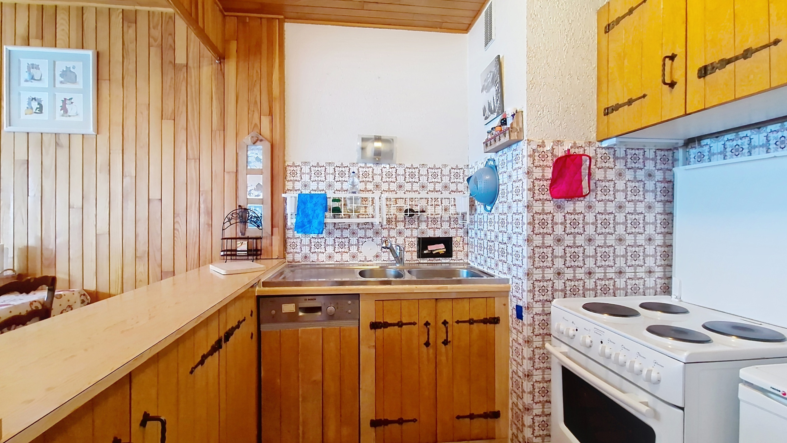 Gemütliches und authentisches 3* Apartment auf 63m2 im dritten Stock. Im Sommer sonniges Wohnzimmer, ausgestattet mit Flachbildfernseher und Wifi. Offene Küche mit großem Kühlschrank und Gefrierfach, Geschirrspüler, Kaffeemaschine, Wasserkocher, Backofen, Mikrowelle und Toaster.