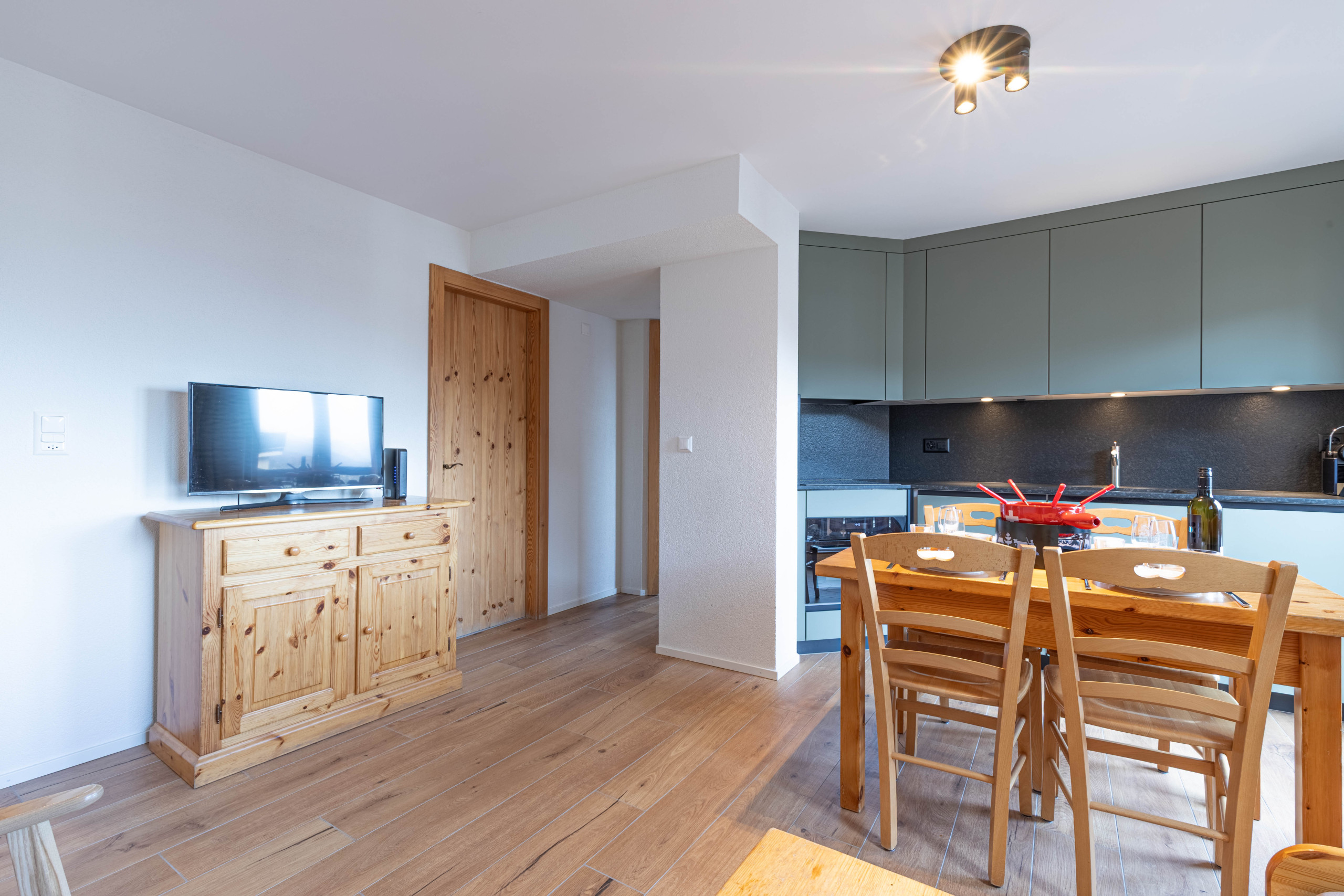 Komfortable 3-Sterne-Wohnung von 42 m² im 4. Stock. Wohnzimmer mit Balkon, Flachbild-Kabel-TV und WLAN. Offene Küche mit Induktionskochfeld, Kühlschrank mit Gefrierfach, Backofen, Geschirrspüler, Mikrowelle, Wasserkocher, Mixer, Nespresso-Kaffeemaschine, Raclette-Gerät und Käsefondue-Topf.