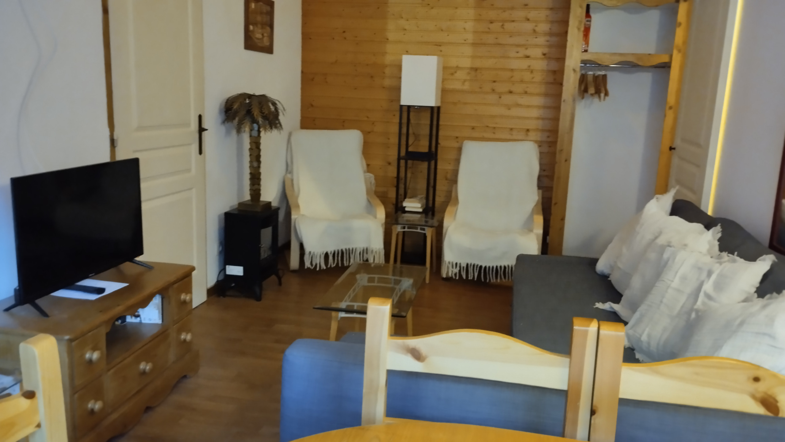 Gemütliche 3*-Wohnung von 32 m2 im zweiten Stock. Wohnzimmer mit Terrasse und Fernseher. Offene Küche ausgestattet mit Kühlschrank und Gefrierschrank, Geschirrspüler, Mikrowelle, Kaffeemaschine, Wasserkocher und Toaster.