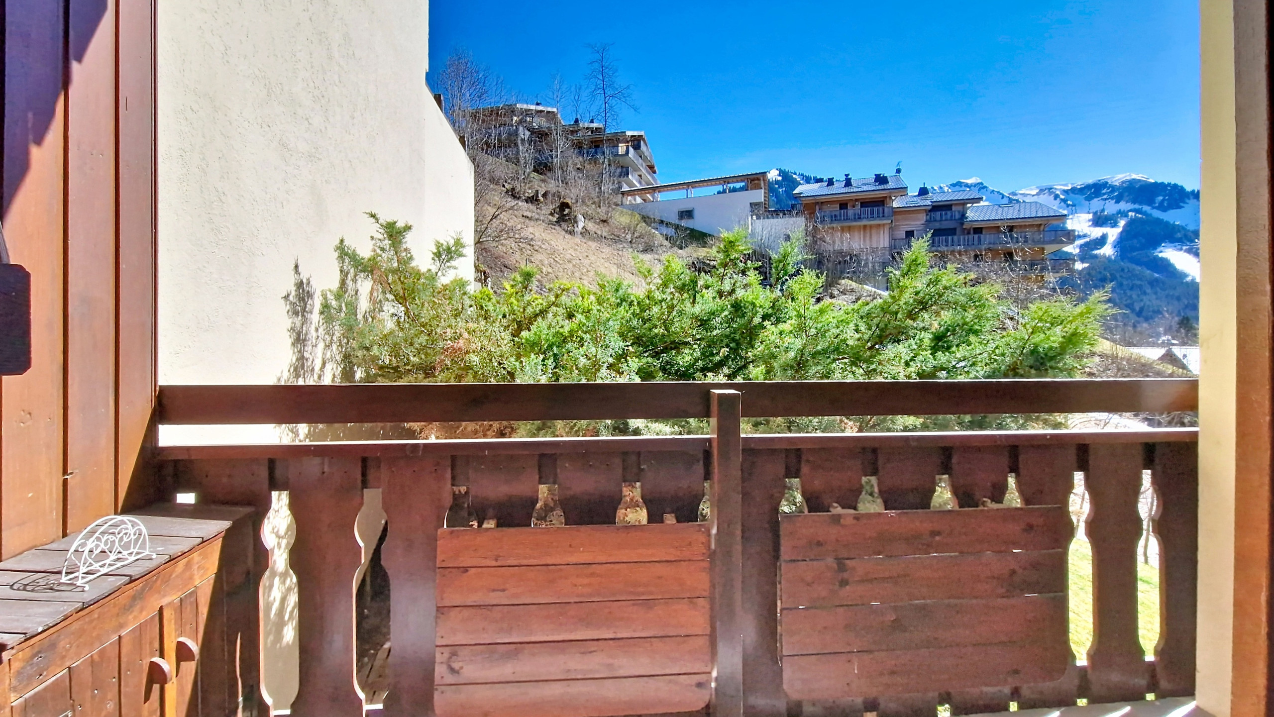 - Außen: Balkon mit Blick auf die Berge