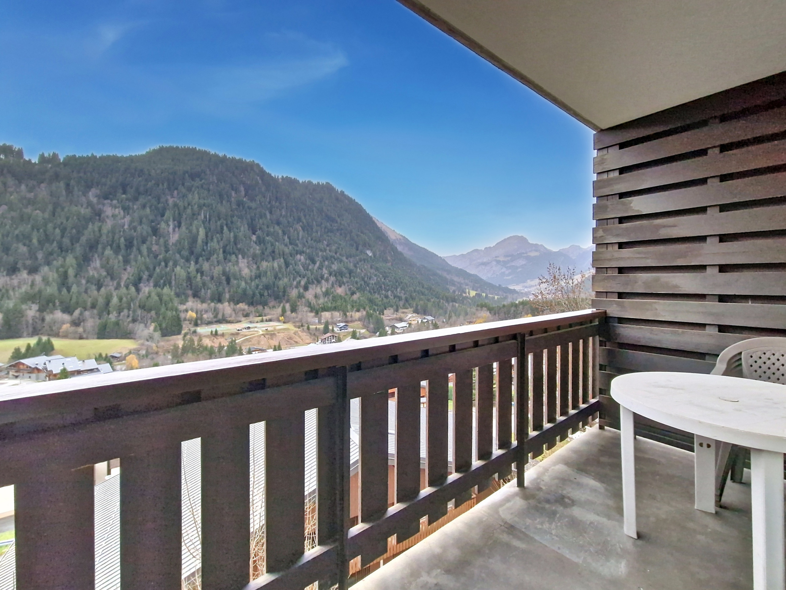 - Außen: Balkon mit Blick auf das Tal von Abondance.