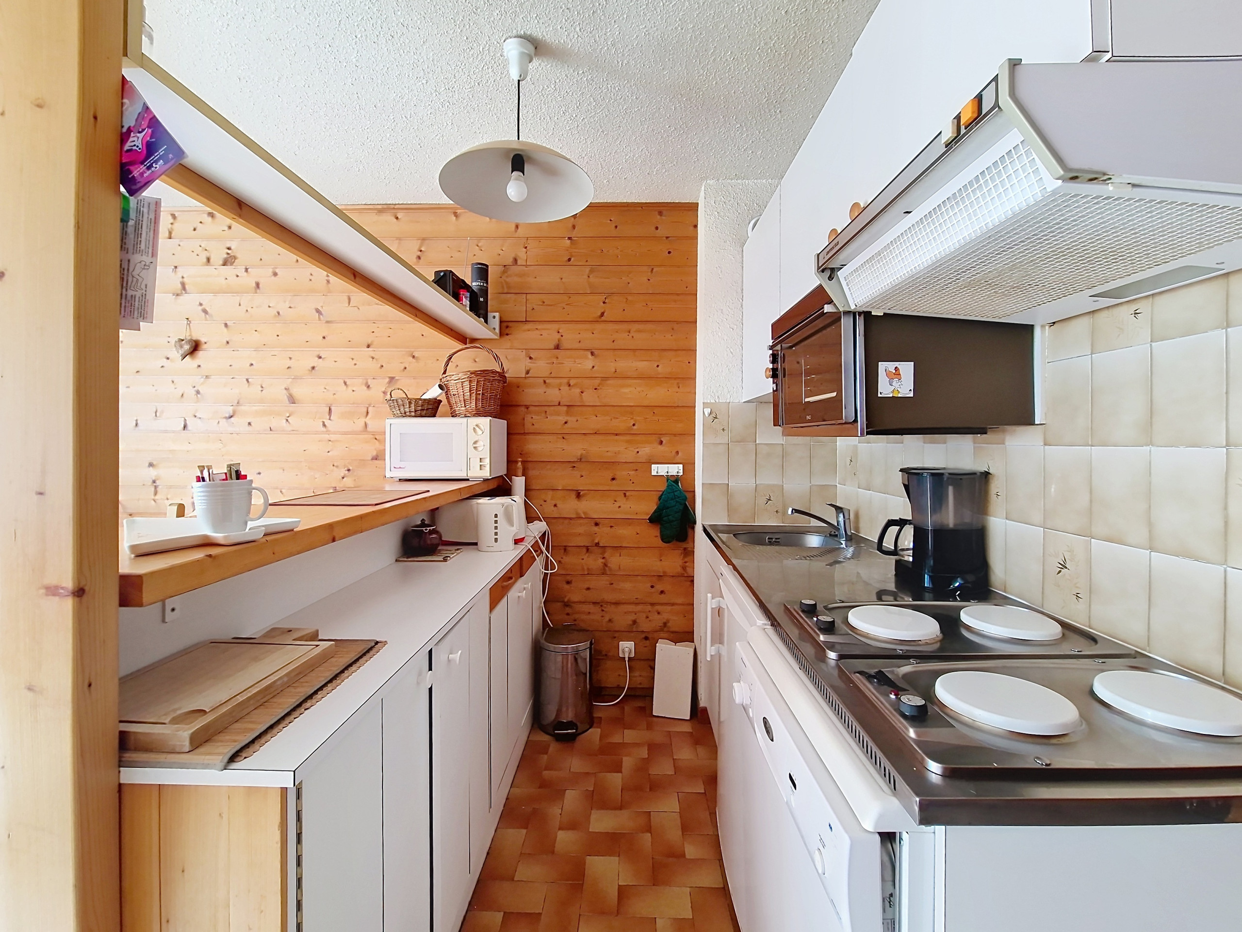 Komfortables 2* Studio mit 19 m2 im 4. Stock. Im Sommer sonniges Wohnzimmer, Flachbildfernseher . Offene Küche mit Cerankochfeld, Kühlschrank mit Gefrierfach, Geschirrspüler, Filterkaffeemaschine, Wasserkocher, Backofen, Mikrowelle und Toaster.
