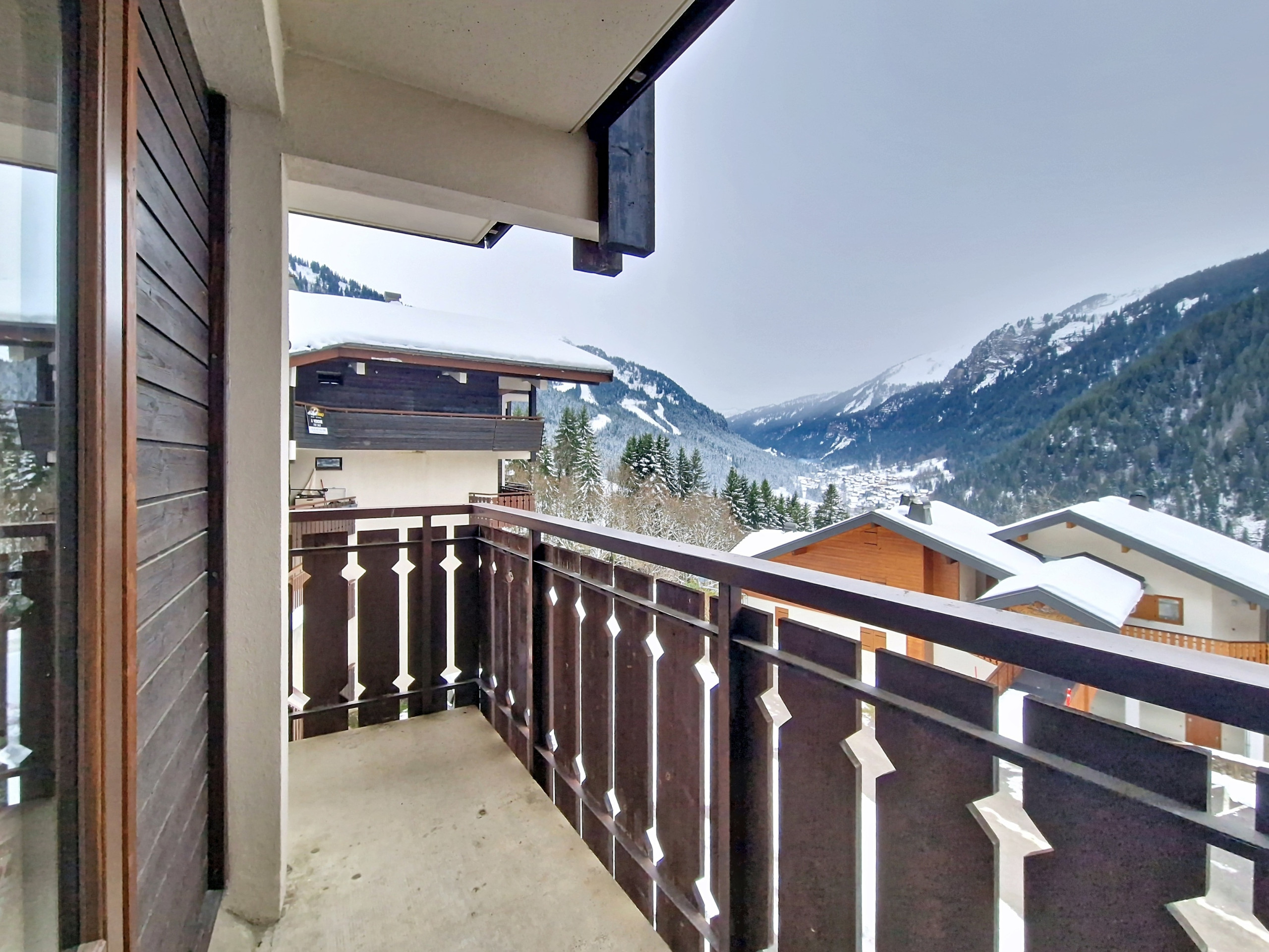 - Außen: Balkon mit Blick auf das Tal von Abondance