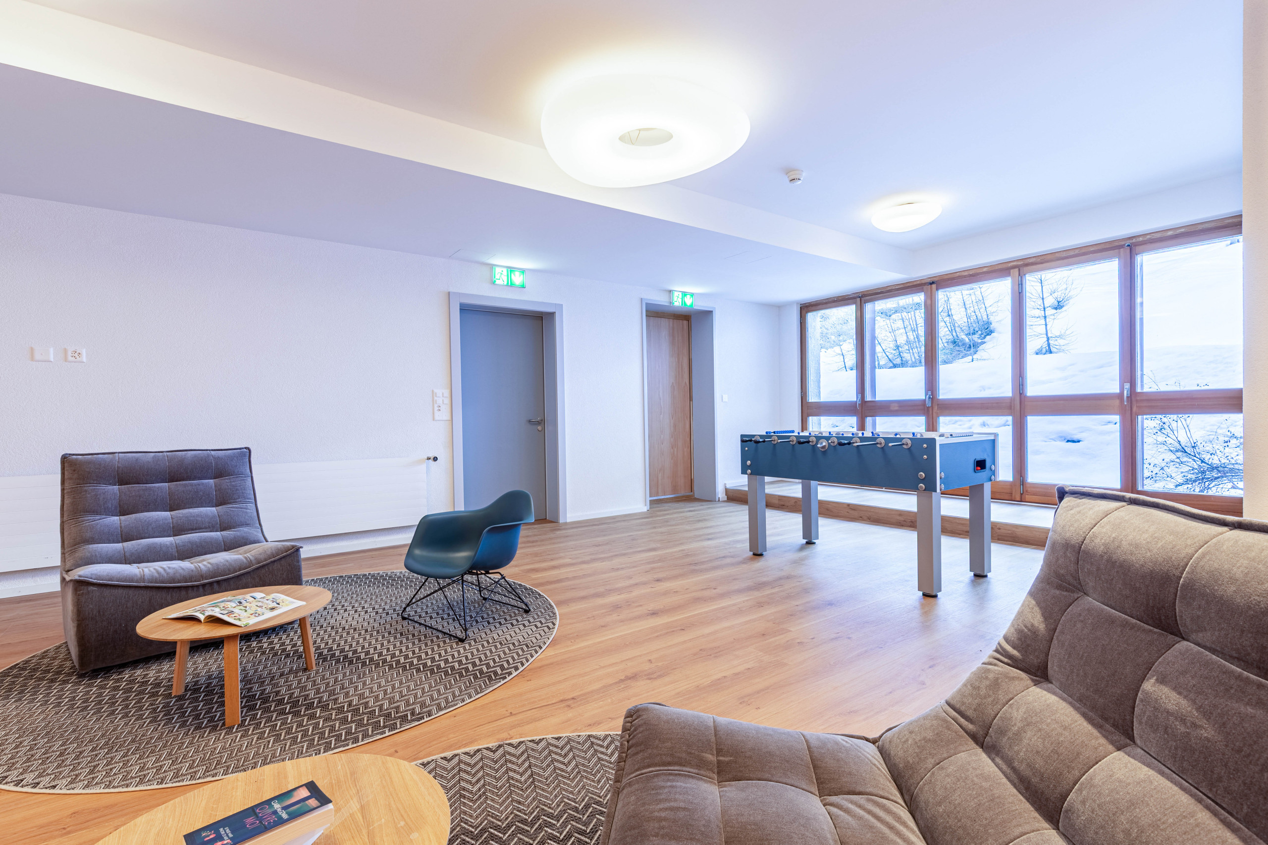 Ruheraum: Entspannungslounge mit Sesseln, ein Sofa + Kapla-Box + Uno-Kartenspiel + Bücher + Mehrfachsteckdose zum Aufladen von Smartphones etc.