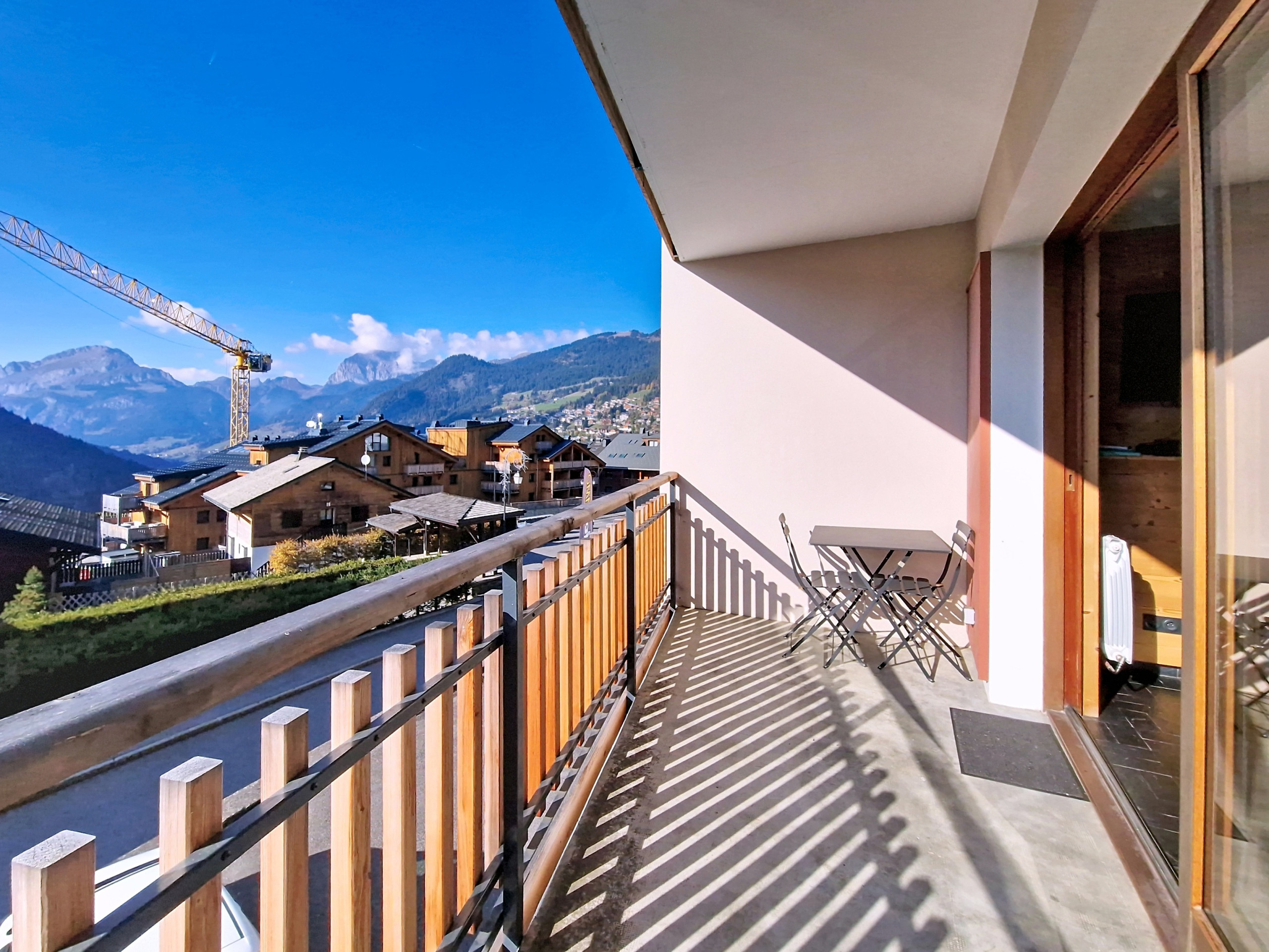 - Buiten: balkon met uitzicht op de Abondance vallei