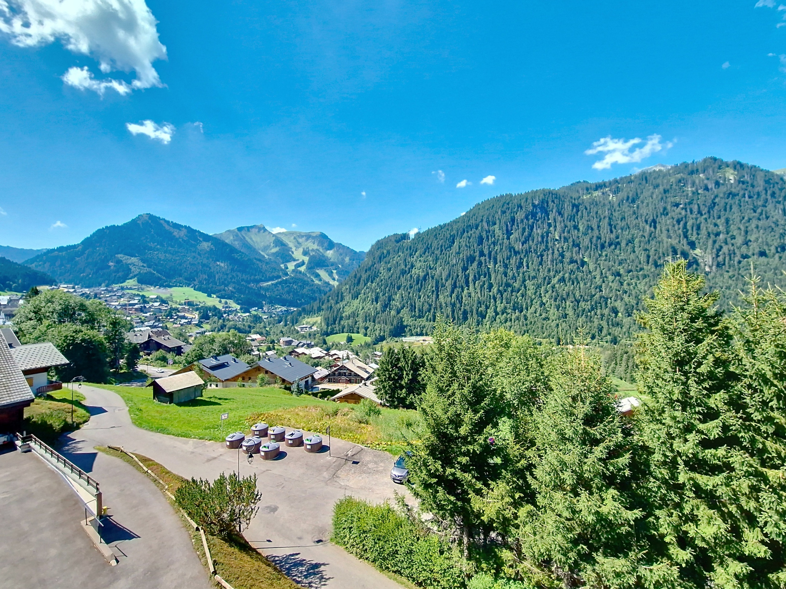 - Buiten: balkon met uitzicht op de Abondance vallei