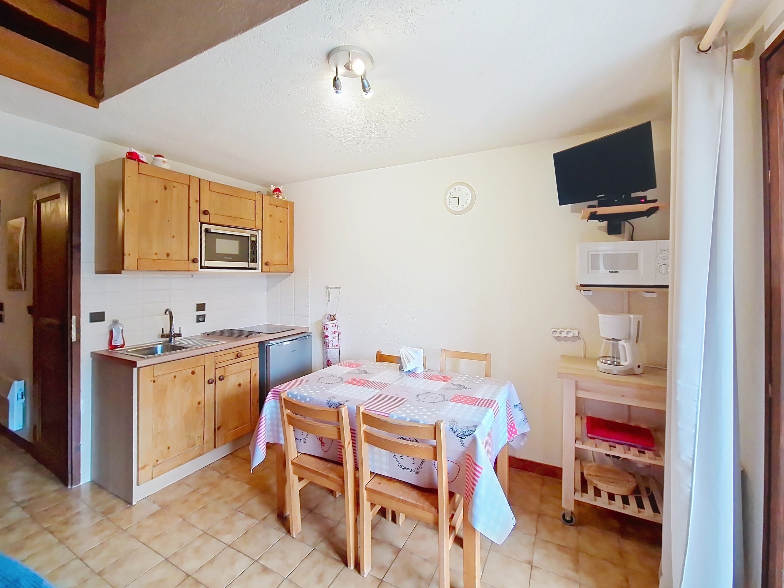 Comfortabel 2* appartement van 26 m2 met mezzanine, op de 2e verdieping. Zonnig verblijf in de zomer, flatscreen-tv. Open keuken voorzien van elektrische kookplaat, koelkast, filterkoffiezetapparaat, waterkoker, oven, magnetron en broodrooster.