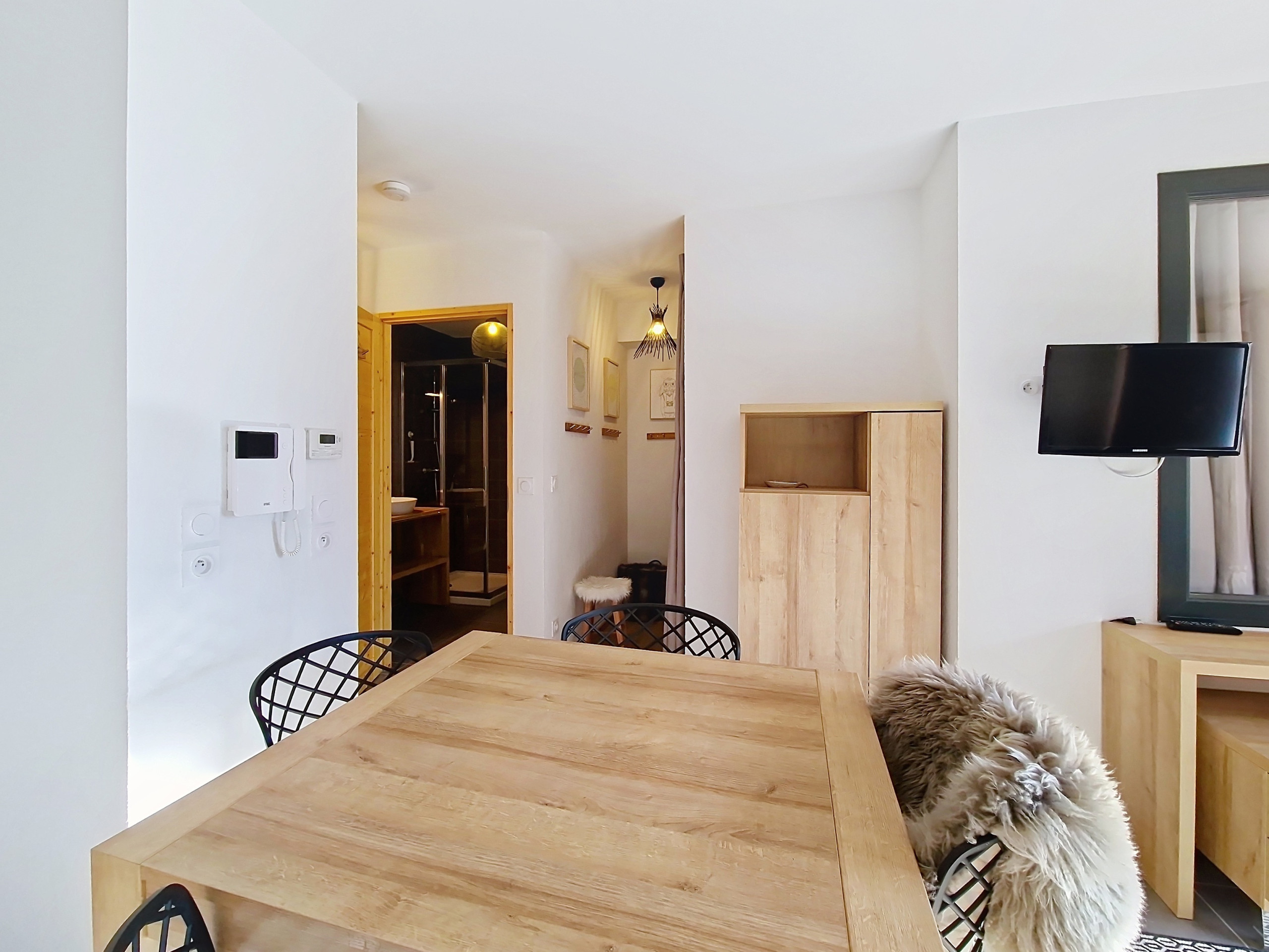 Zeer warme en gezellige 3* appartement van 38m² op de 1e verdieping. Zonnige woonkamer in de zomer, flatscreen kabel-tv en wifi. Open keuken uitgerust met koelkast en vriesvak, keramische kookplaat, vaatwasser, filterkoffiezetapparaat, waterkoker, oven, magnetron en broodrooster.