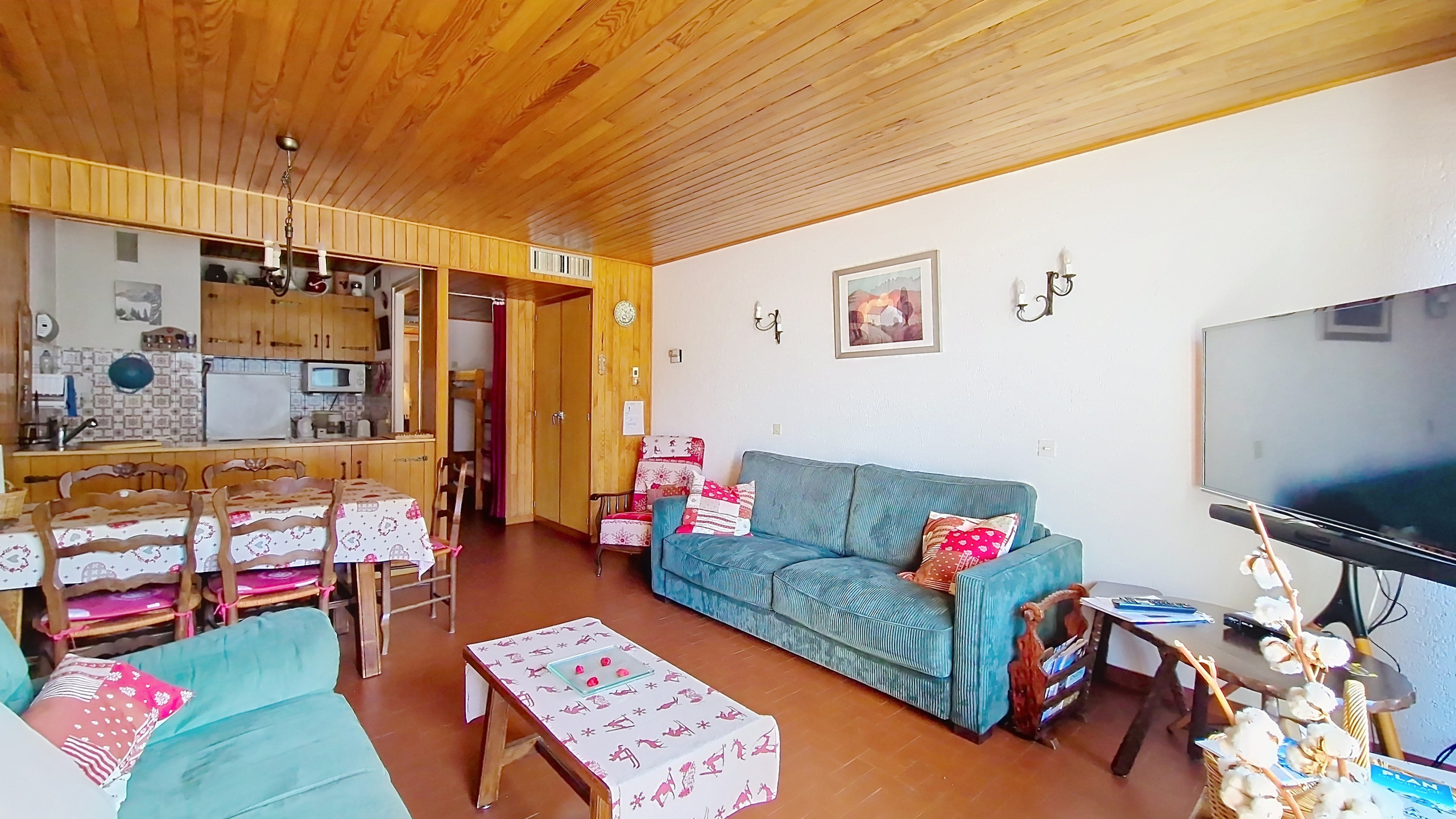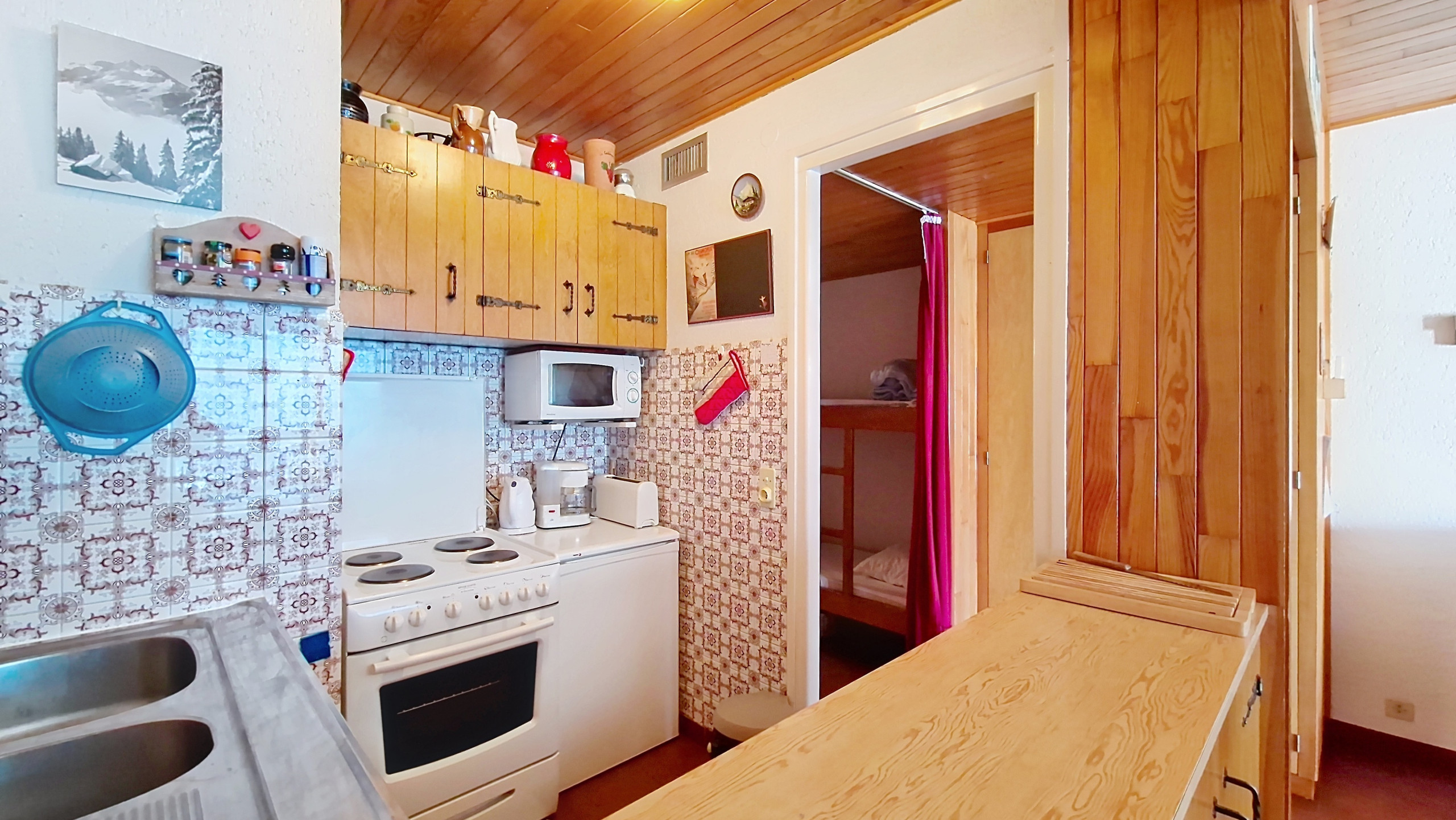 Licht 2-sterren appartement van 28 m2 op de 2e verdieping. Woonkamer met flatscreen-tv met kabelzenders. Open keuken uitgerust met keramische kookplaat, koelkast, filter koffiezetapparaat, magnetron en broodrooster.