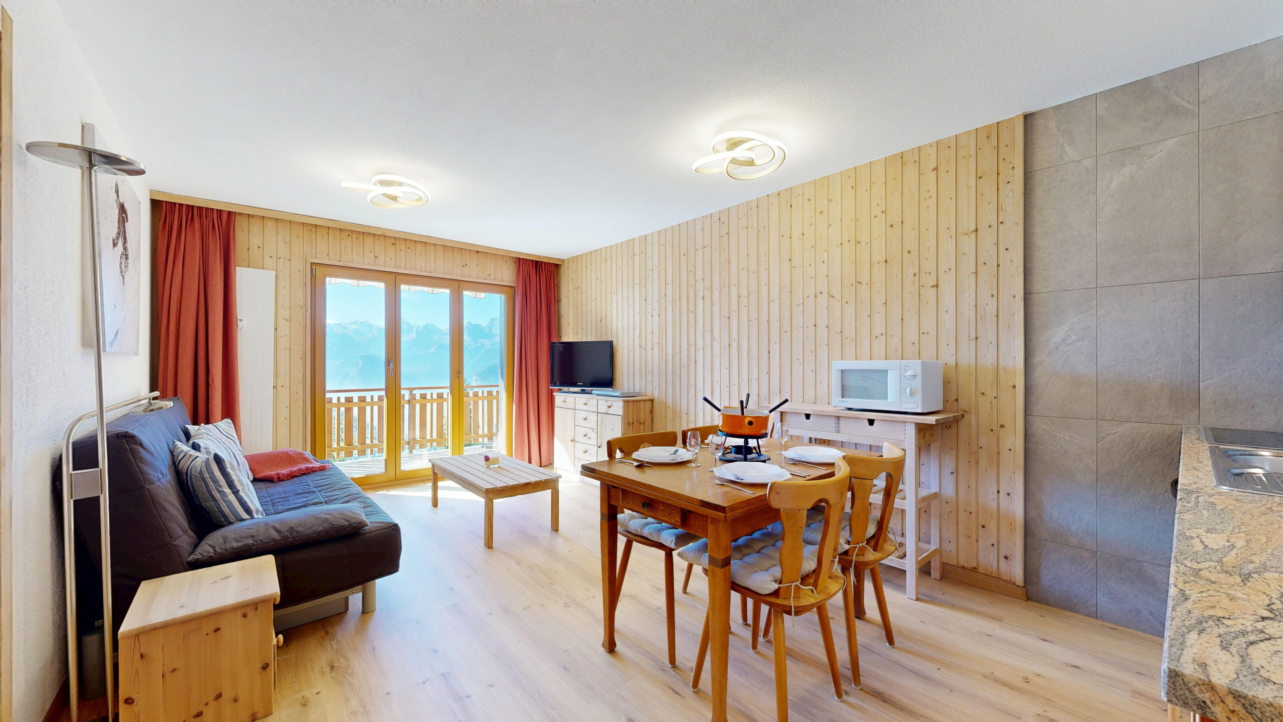 Ontdek dit zonnige appartement in de bergen, midden in de natuur, ideaal voor een ontspannen vakantie. Gelegen in Zwitserland, in Veysonnaz, geschikt voor maximaal 4 personen.