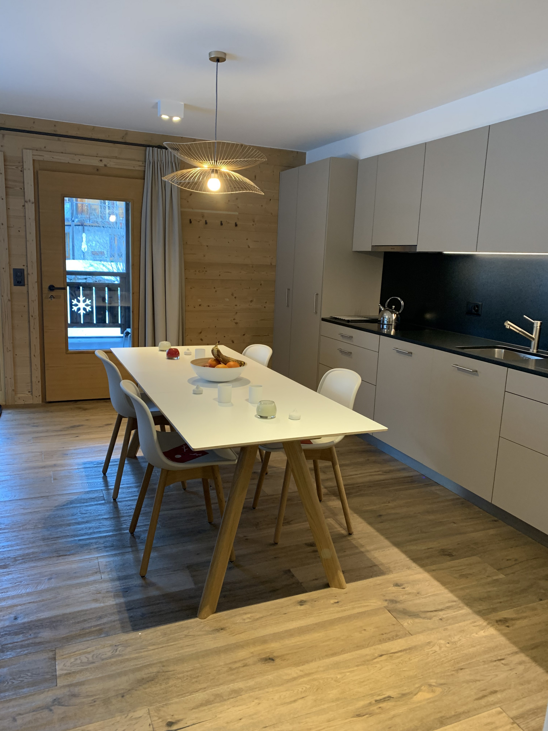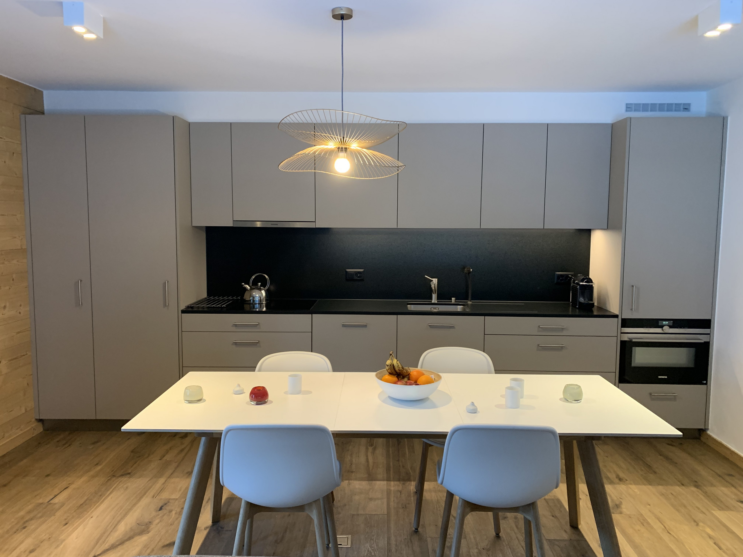 Nieuw 4*+ appartement van 74 m² op de eerste verdieping. Een gezellige woonkamer met smart-tv, Chromecast, AirPlay en Wi-Fi. Open keuken met keramische kookplaat, koelkast met vriesvak, oven, broodrooster, koffiemachine (Nespresso), waterkoker, fondueset en vaatwasser.
