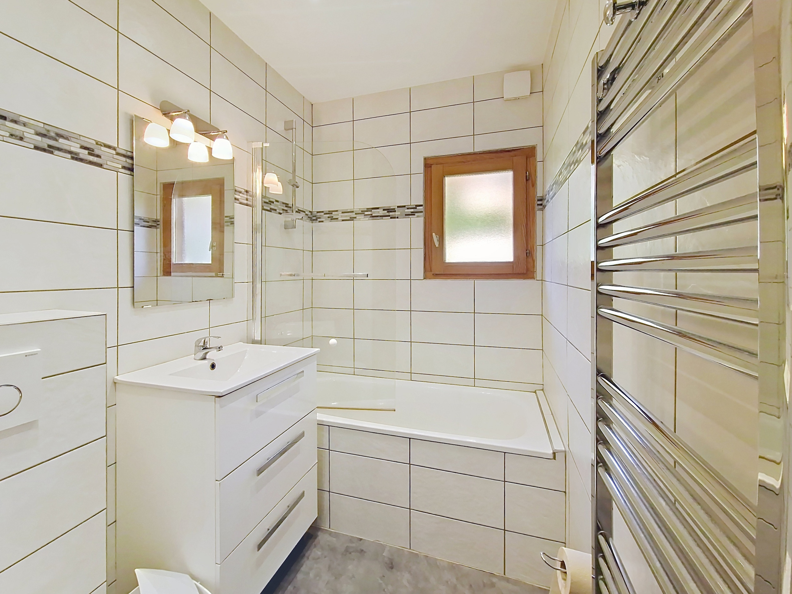 - Badkamer op 1e verdieping: 1x met douche en WC / 2e verdieping 1x met bad en WC