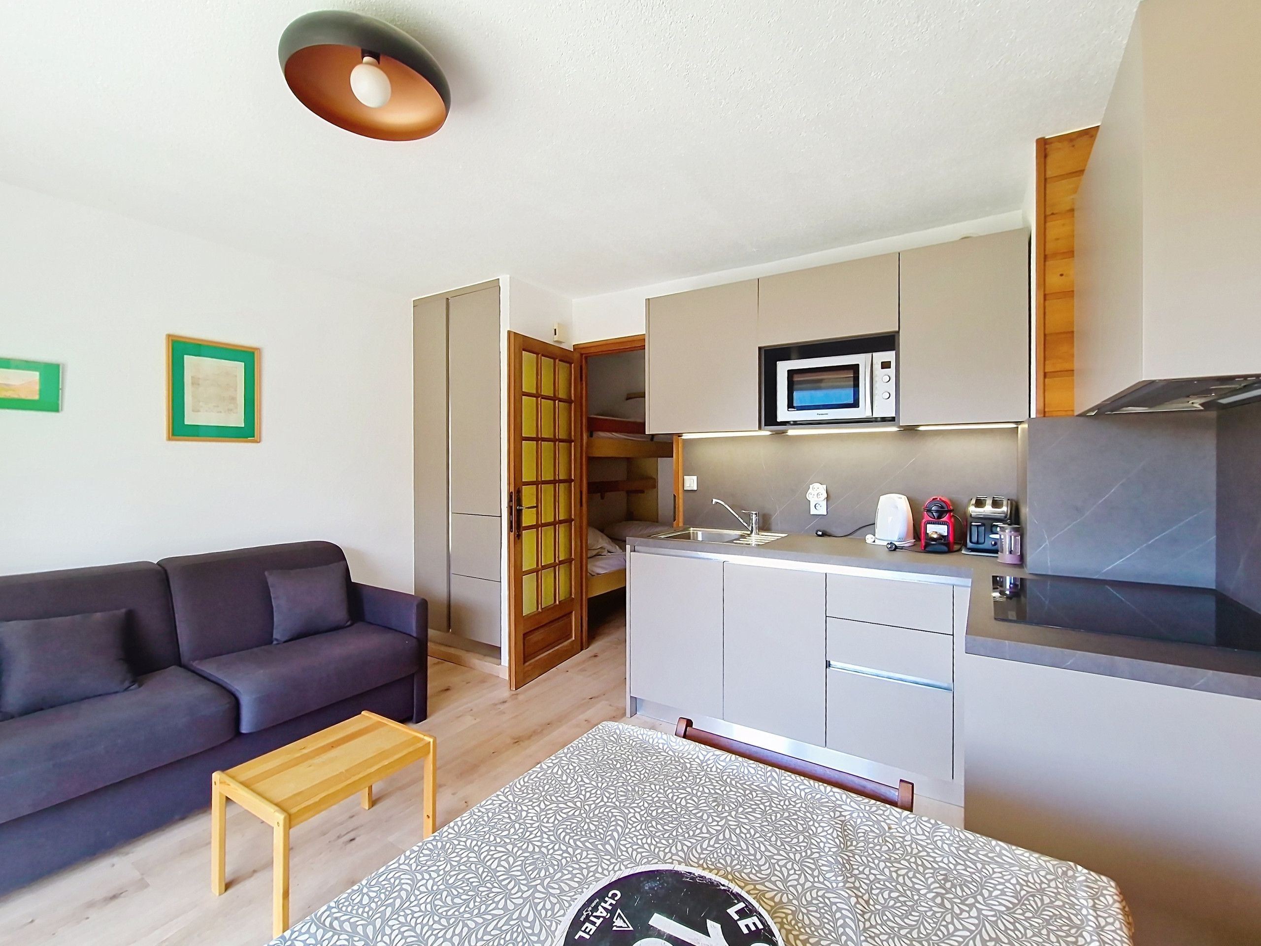Comfortabel 2* appartement van 23 m2 met begane grond (entree gelegen op de 3e verdieping). Zonnig verblijf in de zomer, flatscreen-tv. Open keuken voorzien van keramische kookplaat, koelkast, vaatwasser, Nespresso koffiezetapparaat, waterkoker, multifunctionele oven en broodrooster.