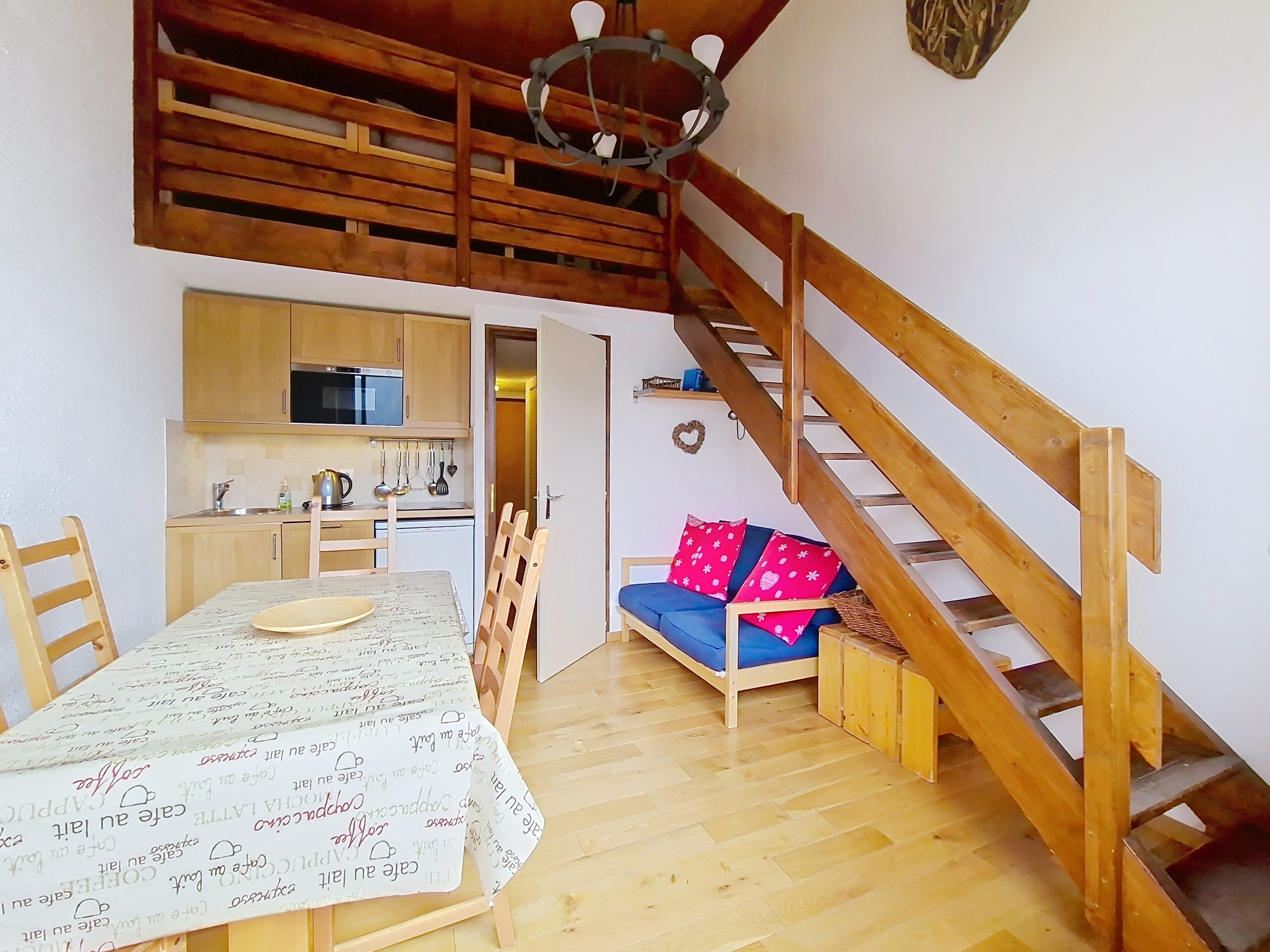 Appartement confortable 2* de 24 m2 au 1er étage. Séjour ensoleillé en période estivale, télévision à écran plat câblée. Cuisine ouverte équipée avec vitrocéramique, frigo, cafetière à filtre, bouilloire, four et grille-pain.