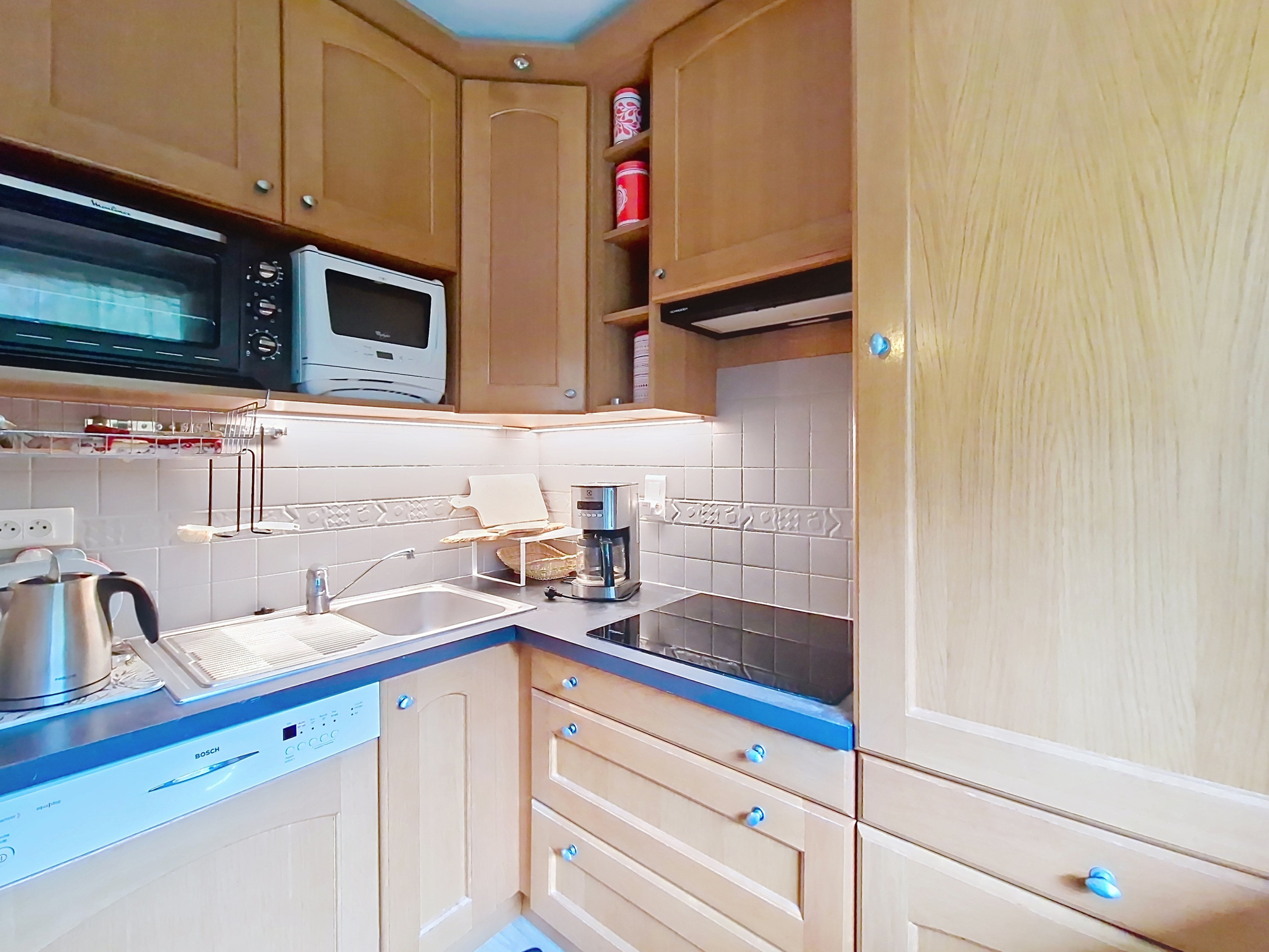 Appartement confortable 2* de 47m2 au rez-de-chaussée. Séjour ensoleillé en période estivale, télévision à écran plat. Cuisine ouverte équipée avec plaques électrique, frigo congélateur, lave-vaisselle, cafetière Nespresso, bouilloire, four, micro-ondes et grille-pain.