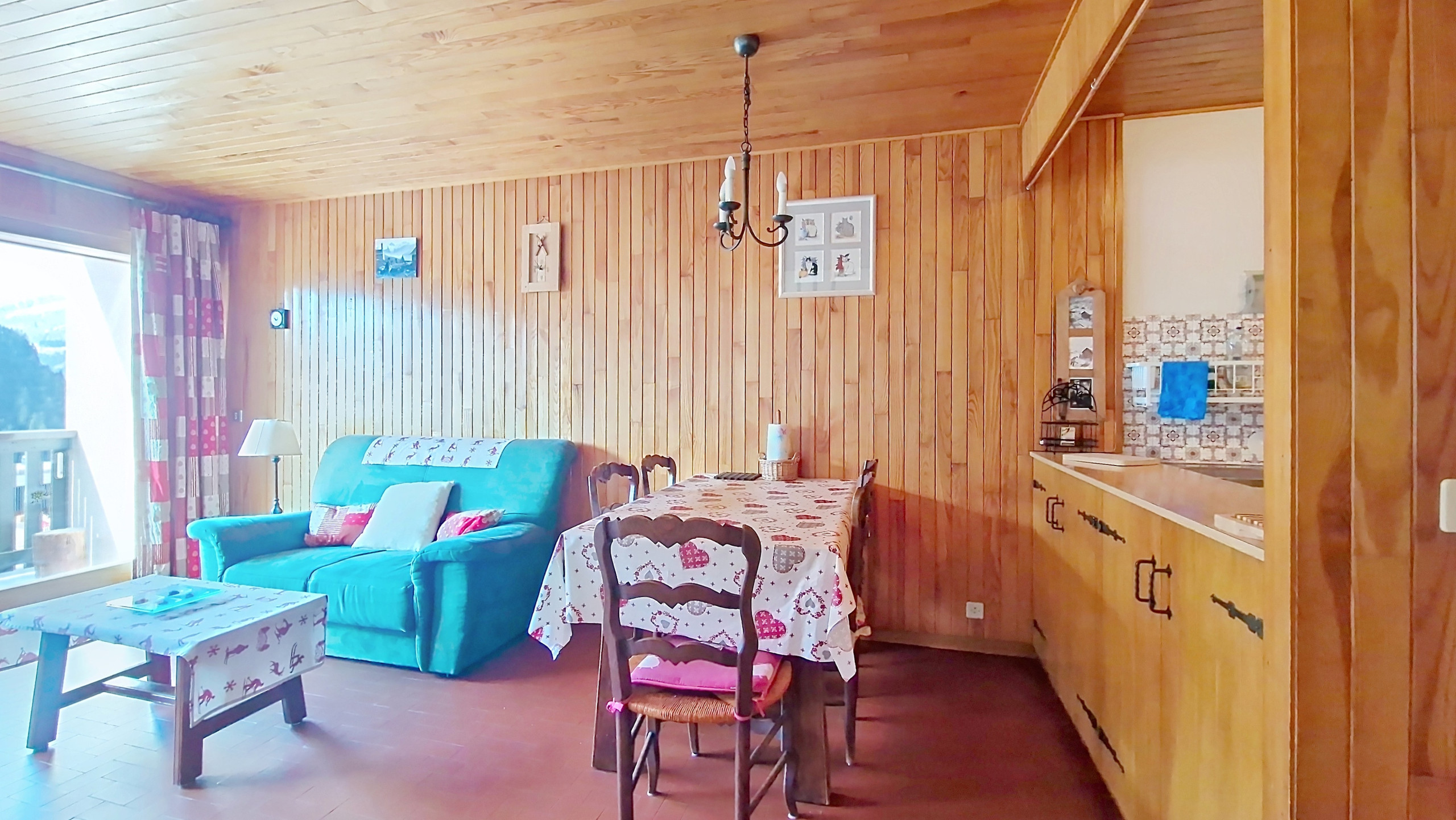 Vous êtes dans la résidence Les Perthuis qui bénéficie d'une situation idéale. Cette résidence composée de 4 bâtiments et sur 3 étages offre un espace de vie cosy ainsi qu’une superbe vue sur les montagnes.