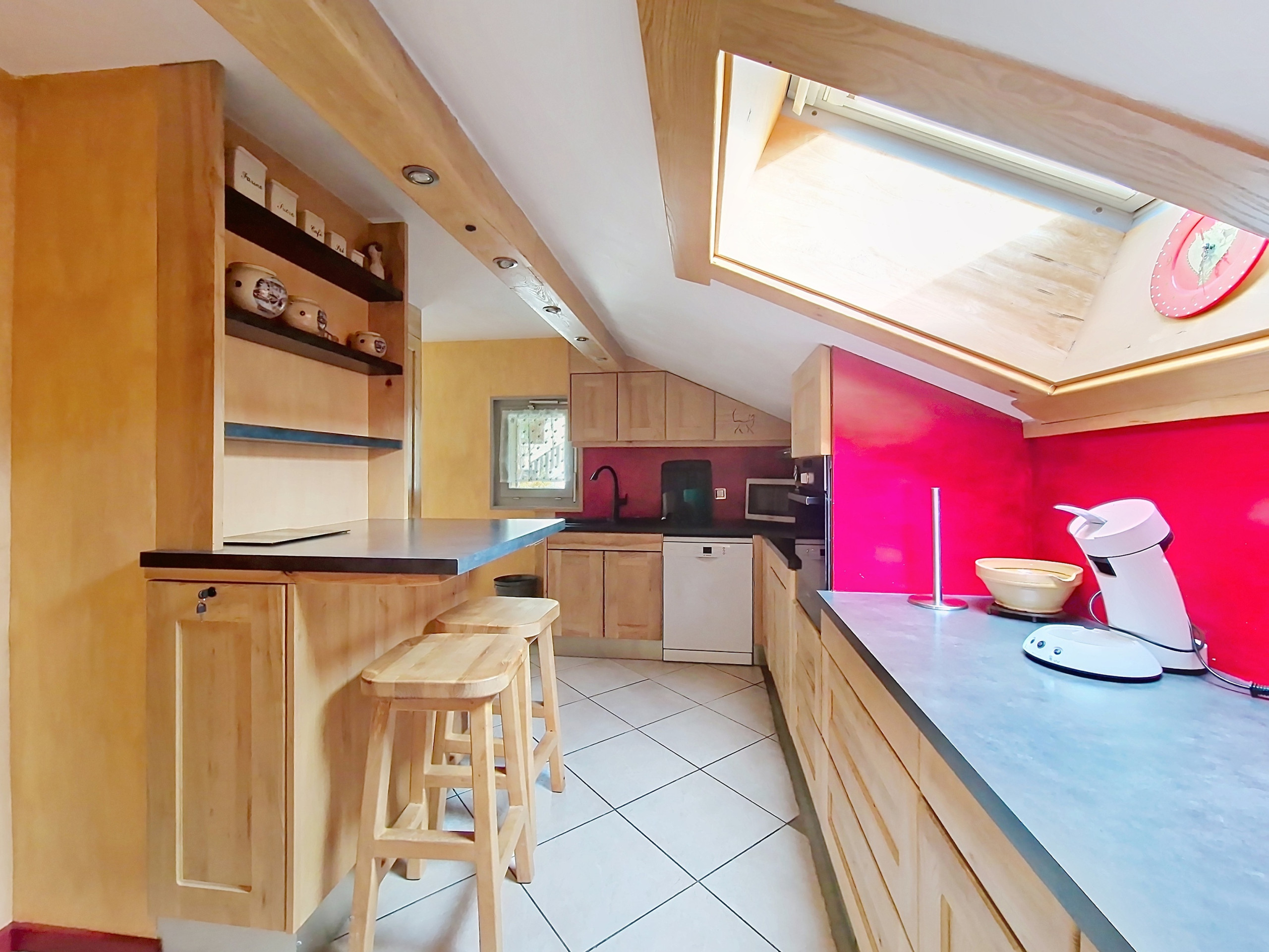 Appartement totalement équipé de 90 m2 au 1er étage. Séjour avec télévision à écran plat câblée. Cuisine ouverte équipée avec plaques à induction, frigo, lave-vaisselle, cafetière à filtre et Senséo, four, bouilloire, micro-ondes et grille-pain.