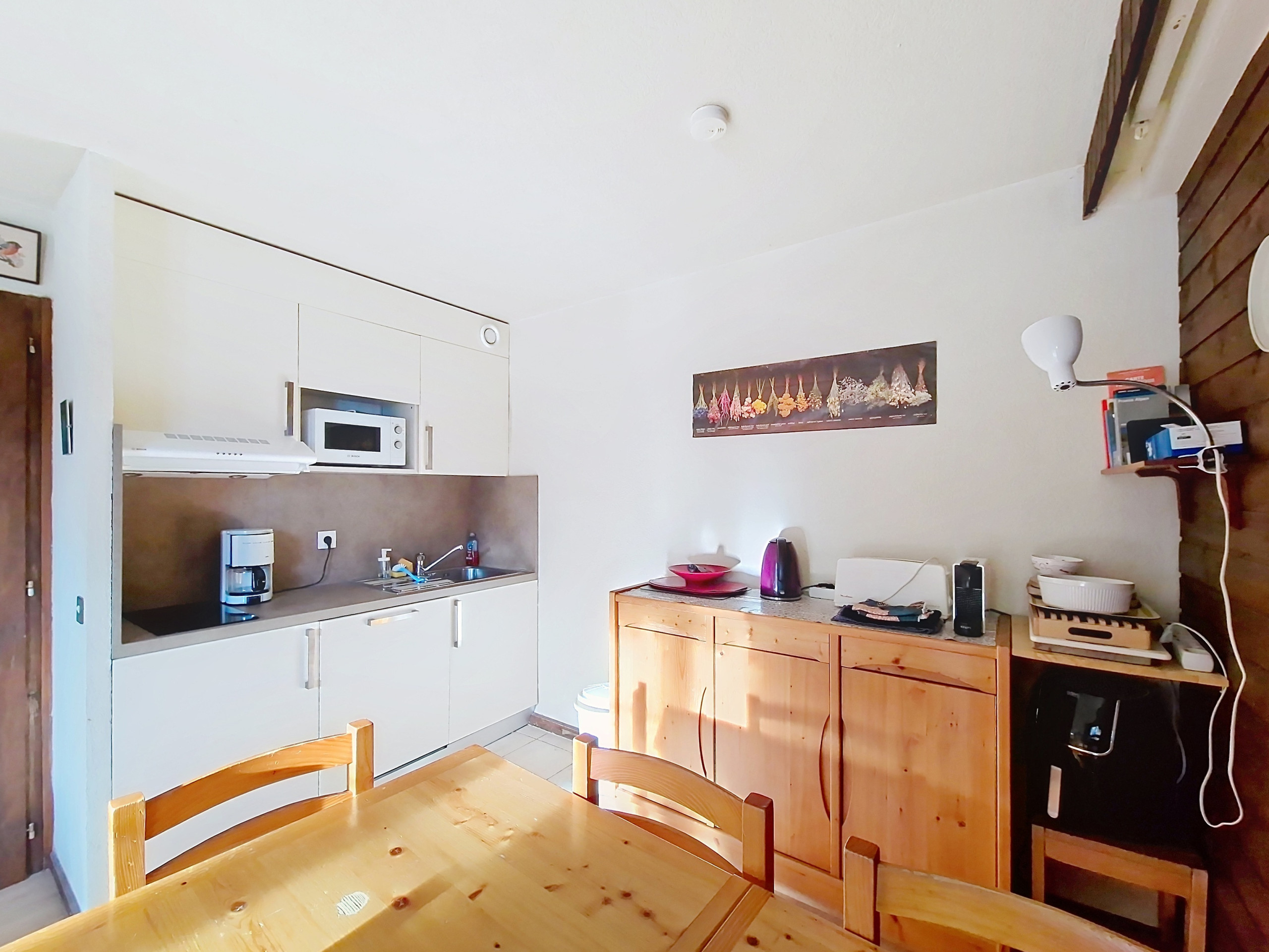 Appartement confortable 2* de 24 m2 au 1er étage. Séjour ensoleillé en période estivale, télévision à écran plat câblée. Cuisine ouverte équipée avec vitrocéramique, frigo, cafetière à filtre, bouilloire, four et grille-pain.