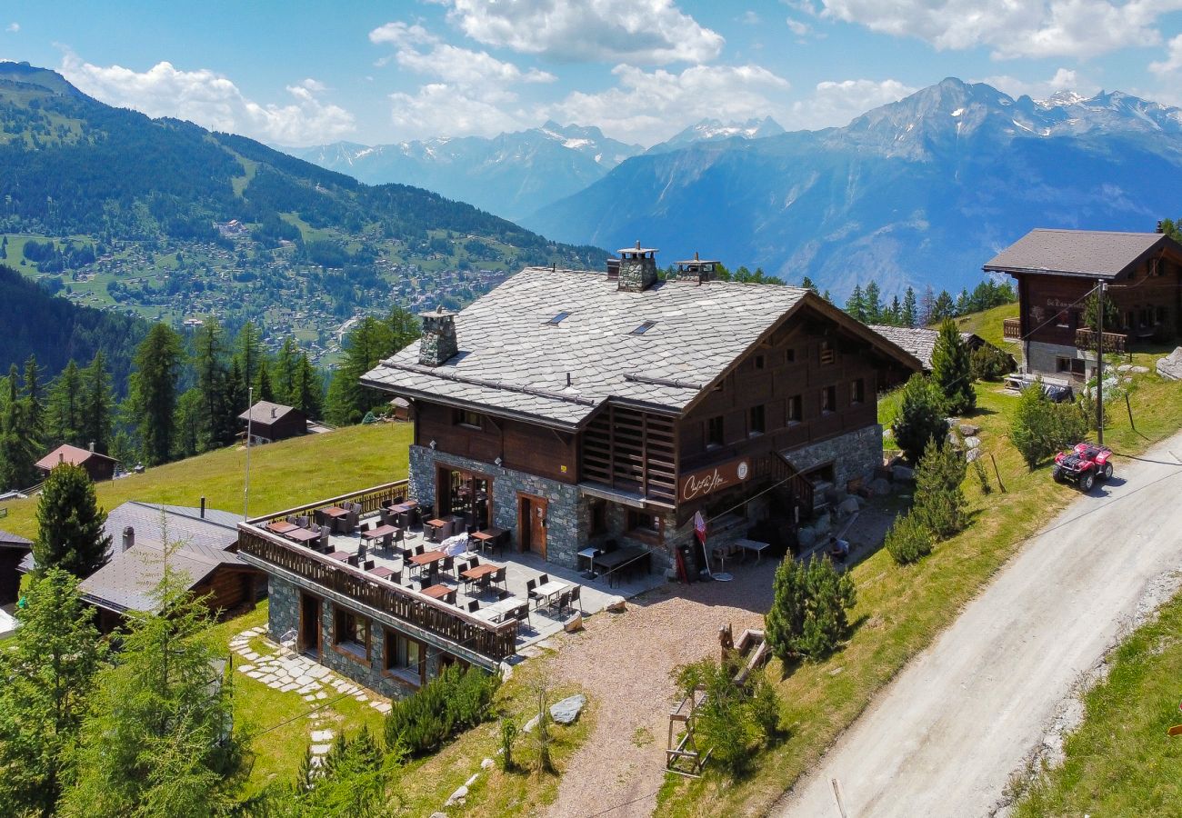 Vous êtes dans l’appartement 002 du Chalet des Alpes, un endroit unique, qui jouit d'une situation privilégiée et ensoleillée directement sur les pistes de ski de Prarion au cœur du domaine skiable des 4-Vallées. Ce chalet de style typiquement Alpin, se compose de 4 appartements confortables, dont 3 appartements neufs, et un restaurant. En hiver chaussez les skis devant la porte et en fin de journée profitez du calme et de la nature avec des vues imprenables sur les Alpes en été comme en hiver. En été vous êtes au départ de nombreuses belles balades et entouré des mélèzes de Balavaux, les plus gros mélèzes d'Europe.