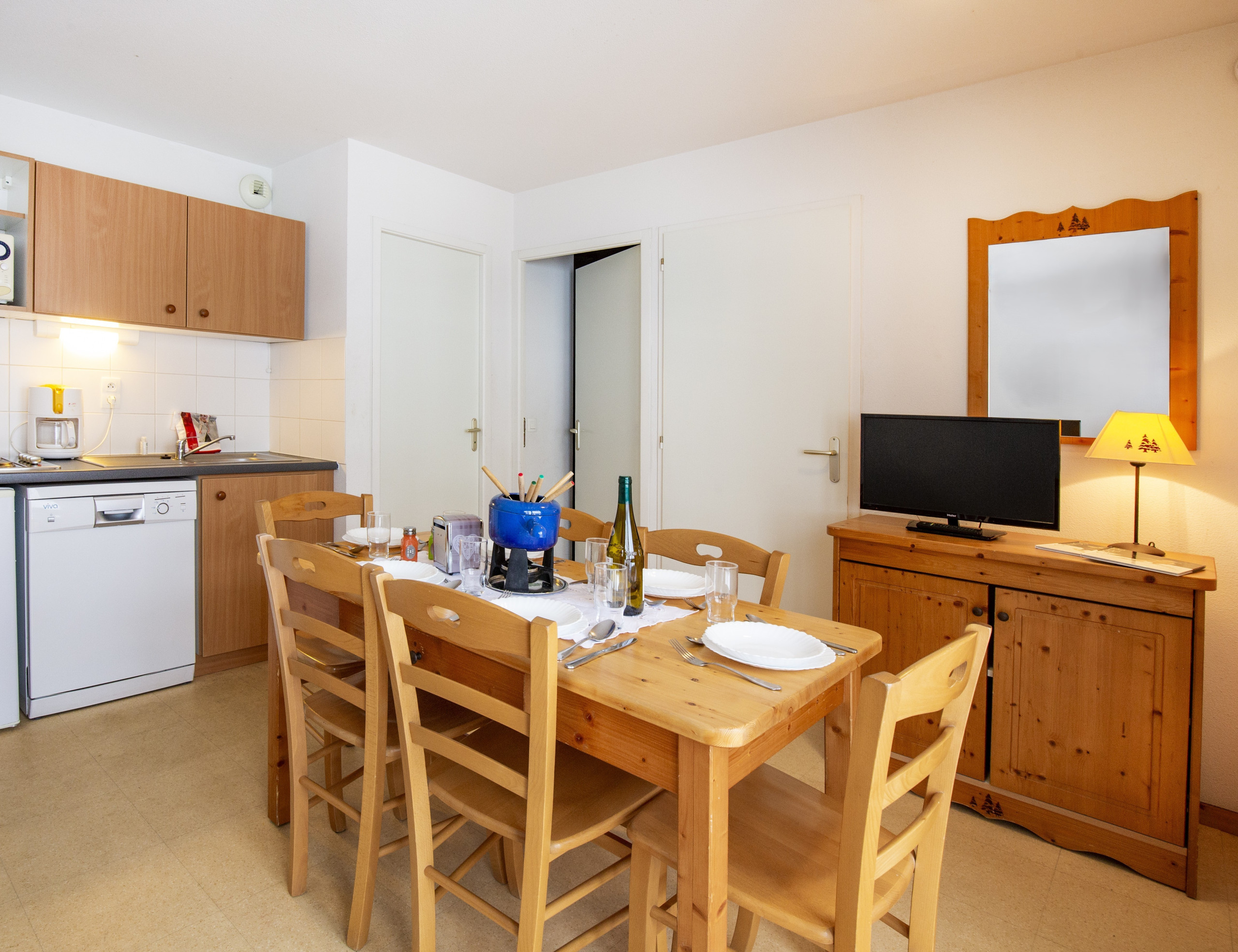 Appartement confortable et rénové 3* de 31 m2 au premier étage. Séjour avec télévision. Cuisine ouverte équipée avec frigo et compartiment congélateur, lave-vaisselle, micro-ondes, cafetière, bouilloire et grille-pain.