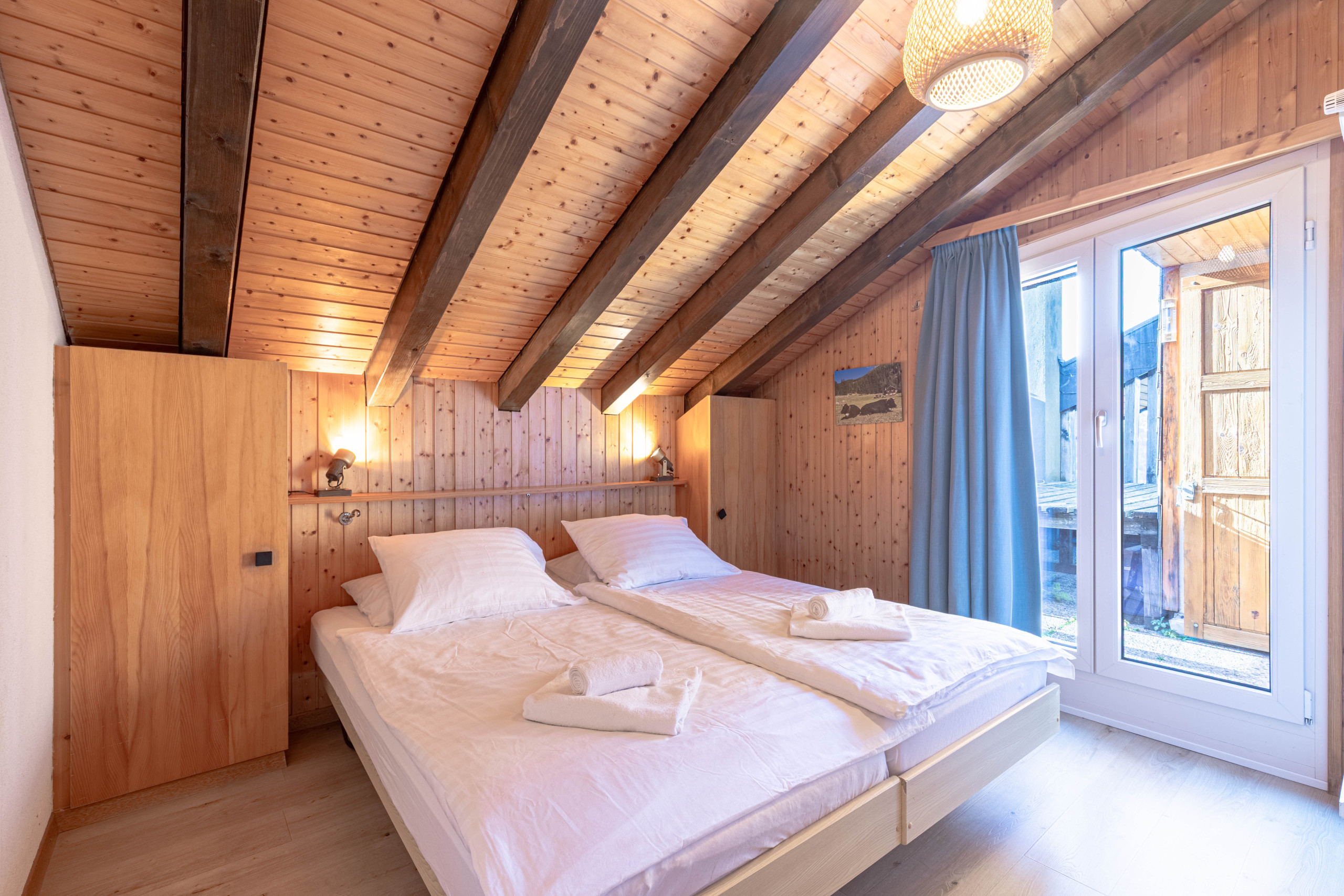 - Deux chambres avec deux lits simples côte à côte.