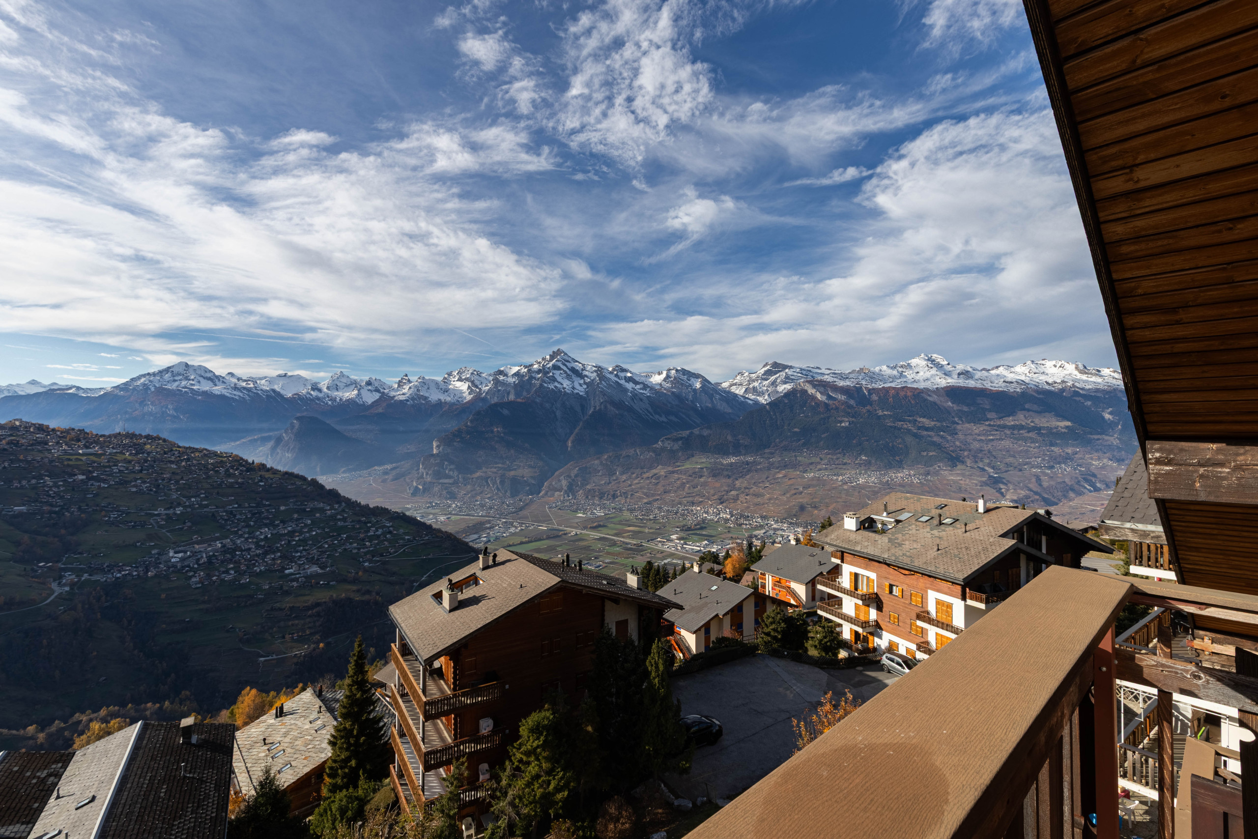 - Extérieur : Un balcon et une petite terrasse avec une magnifique vue sur Nendaz et les montagnes.
