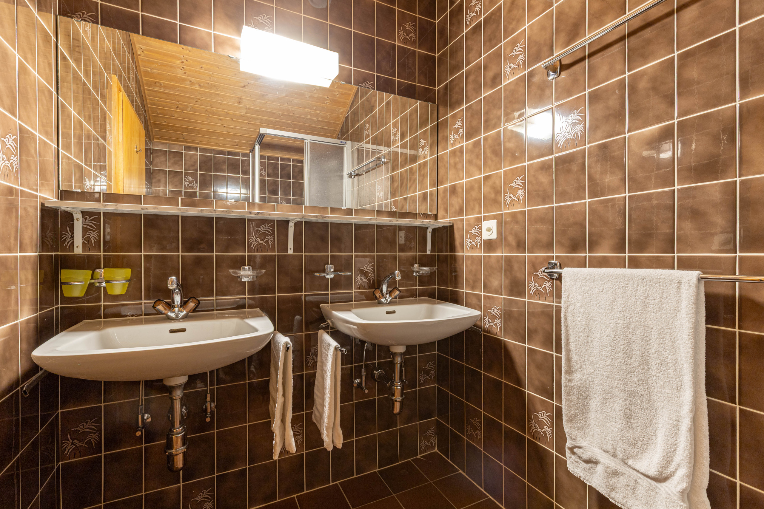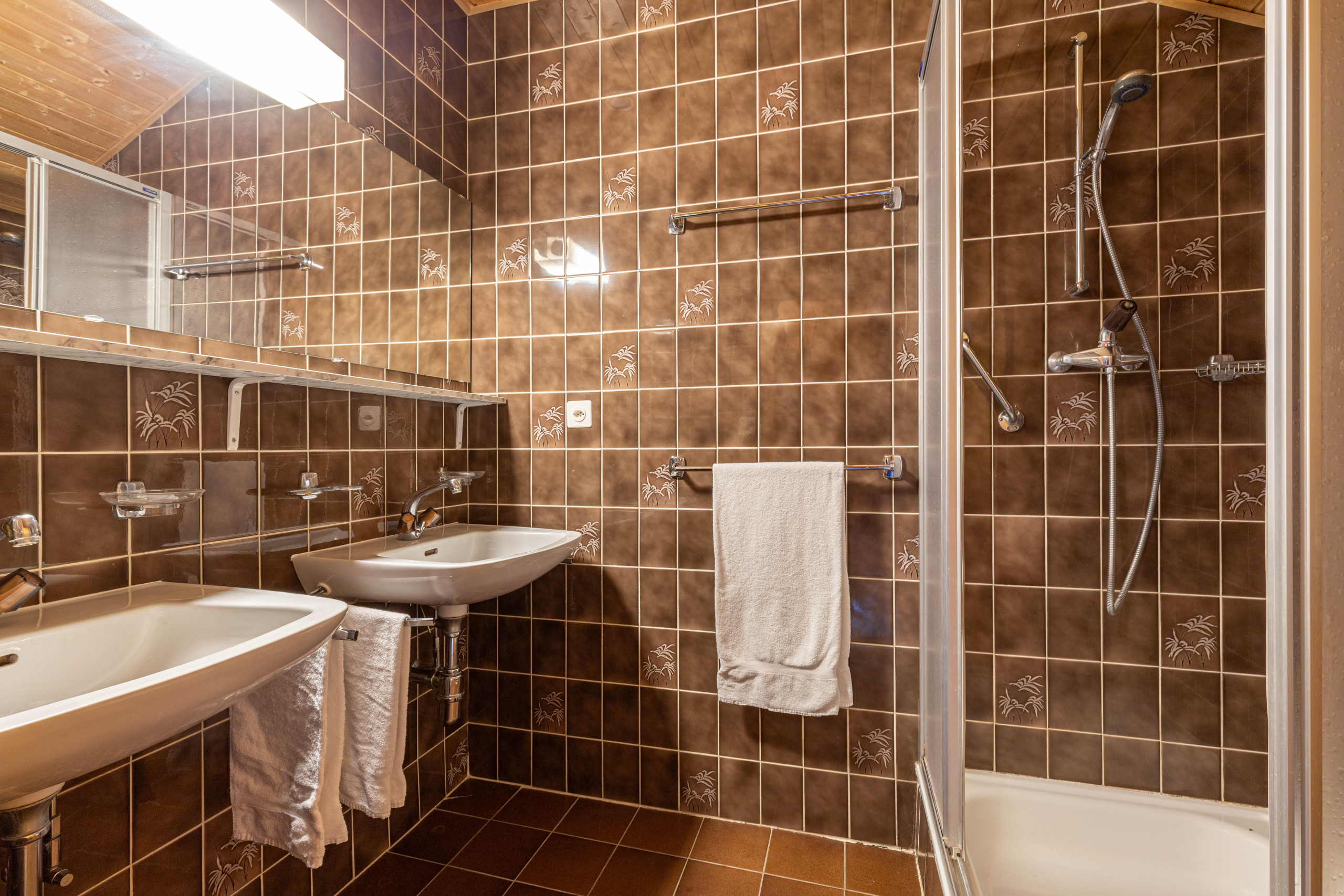 - Salle de bain : 1x avec toilette et baignoire, 1x avec une douche et deux lavabos, 1x toilette individuelle