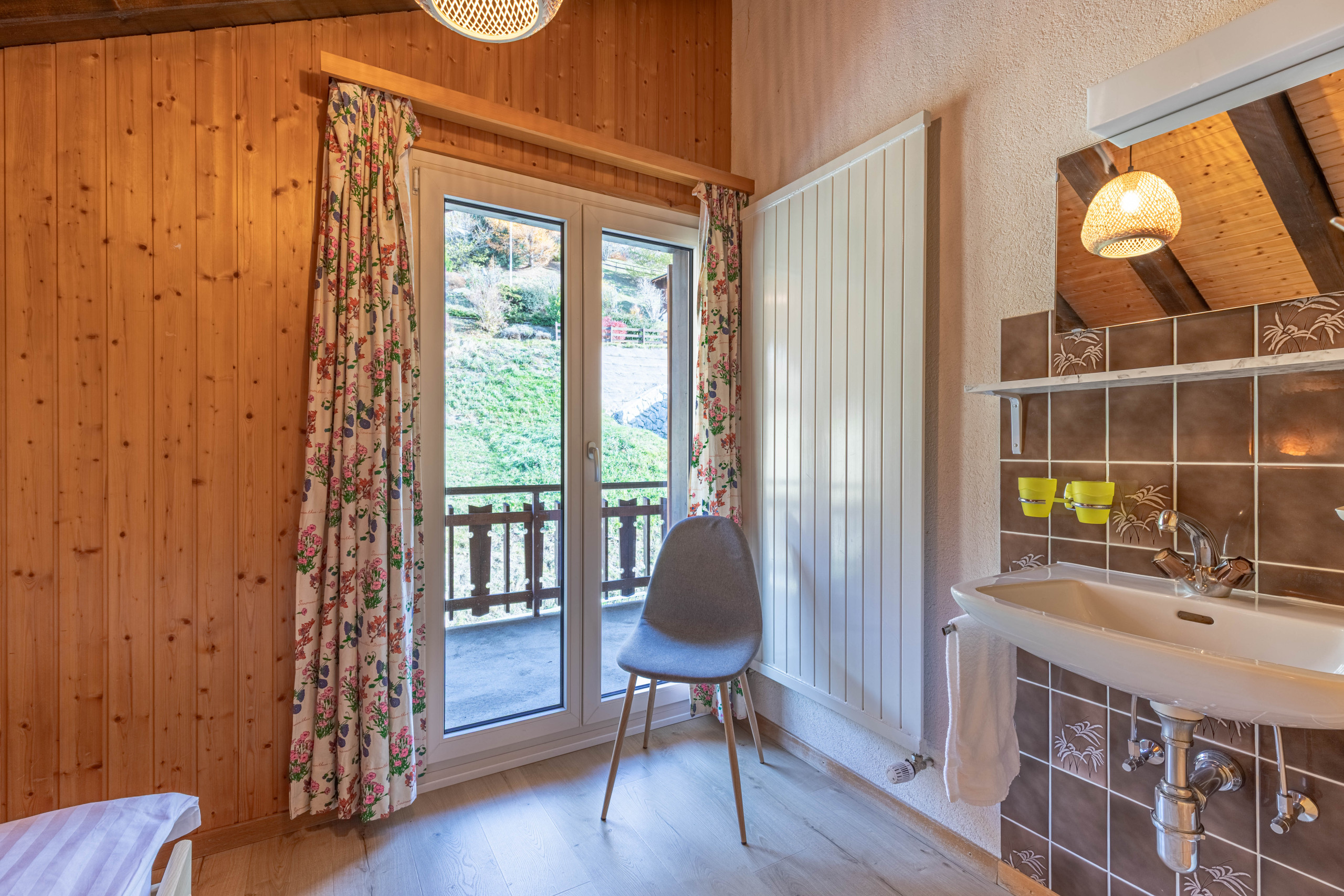 - Extérieur : balcon avec vue sur la vallée et mobilier jardin