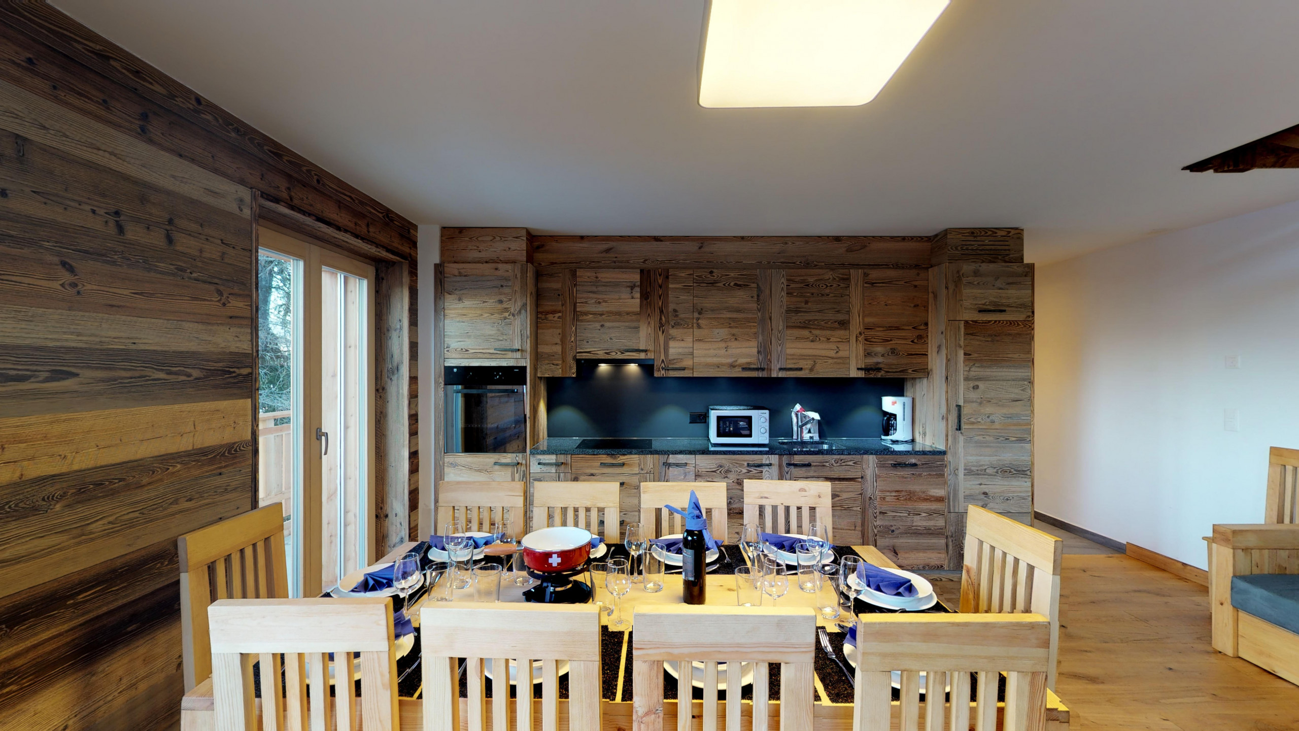 Spacious, clean, good beds, good showers. Nice interior, very cosy. Sufficient wardrobes and storage options. Good ski locker (but 7 people is the max).