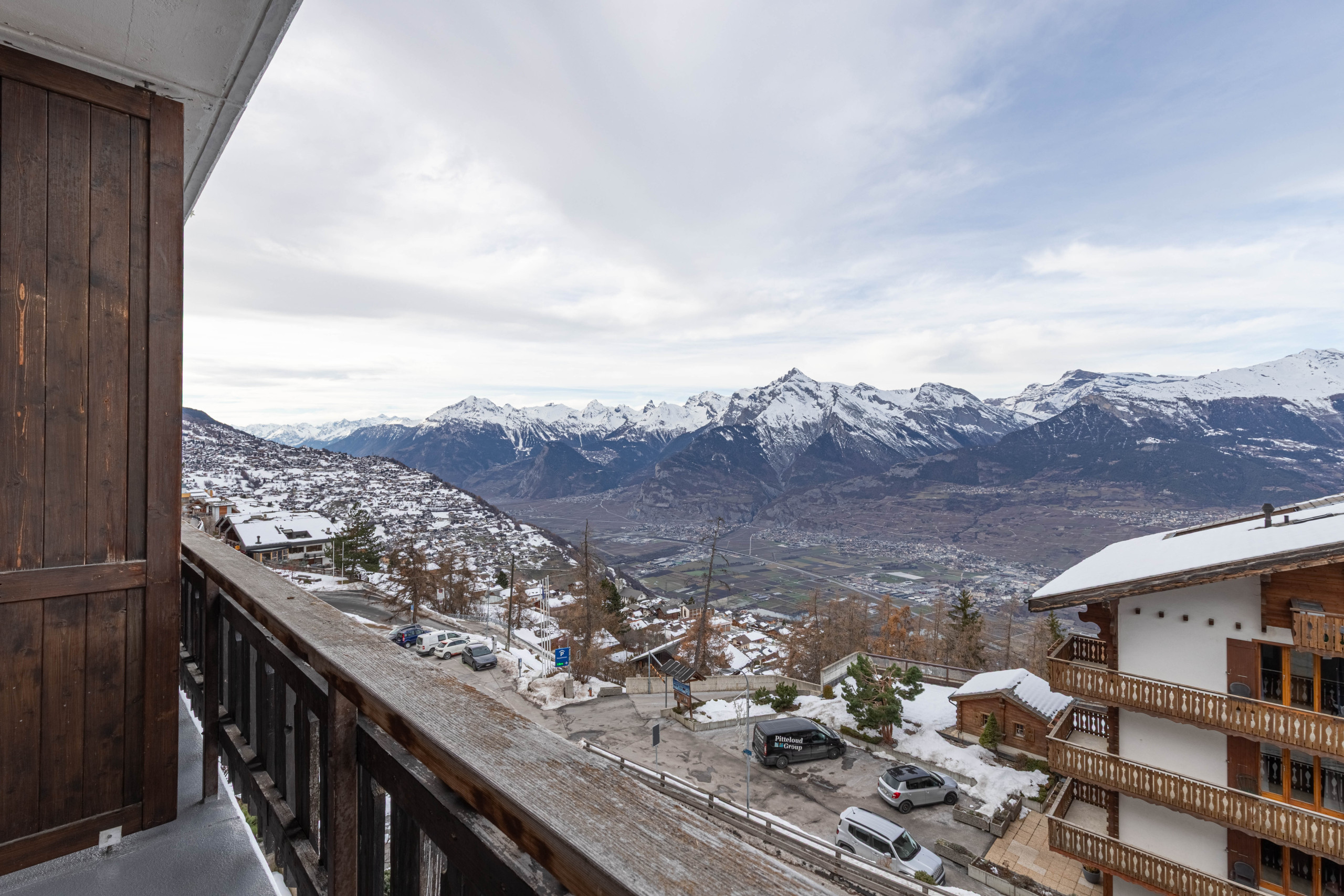 Vous êtes dans la résidence Les Mélèzes qui jouit d'une situation privilégiée juste à côté du départ de la télécabine, idéal pour les vacances de ski. Et vous êtes sur le Bisse de Vex, qui vous offre une magnifique promenade en été. Le centre de la station avec ses commerces et restaurants se trouve juste à 150 mètres. Cette résidence se compose de 2 immeubles avec plusieurs appartements standards et confortables avec ascenseur. L'accès à l'immeuble se fait par des escaliers. Chaque appartement est doté d'un balcon ou terrasse offrant une magnifique vue sur la vallée du Rhône.