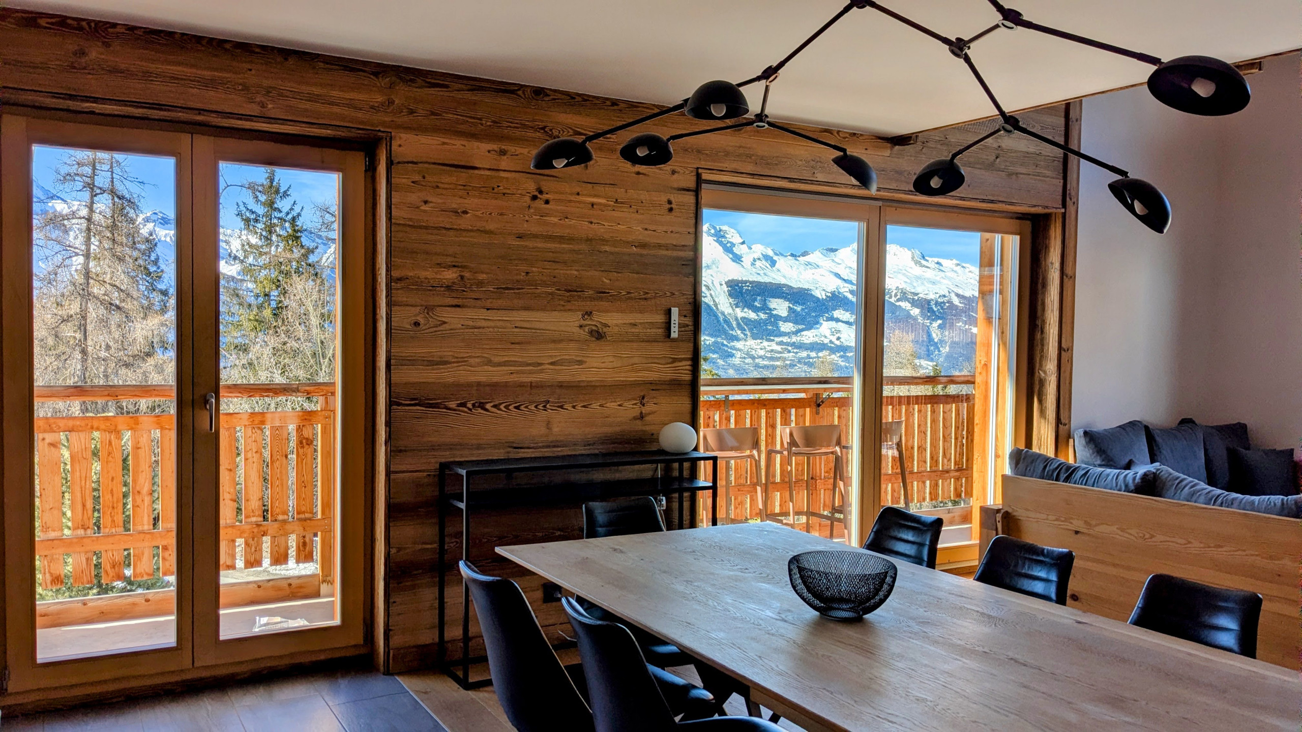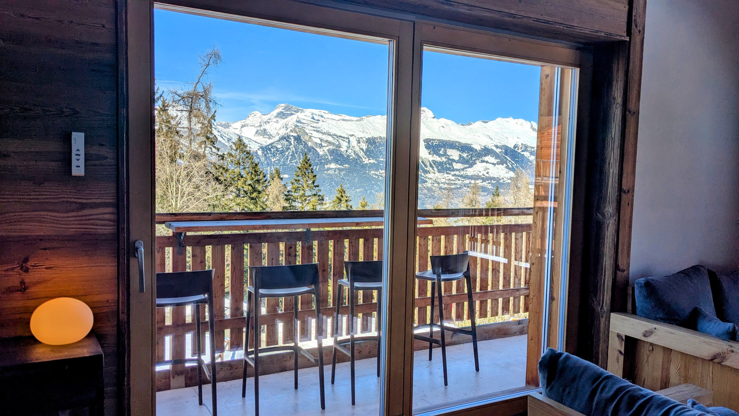 - Extérieur : Balcon avec vue sur Nendaz et mobilier de jardin
