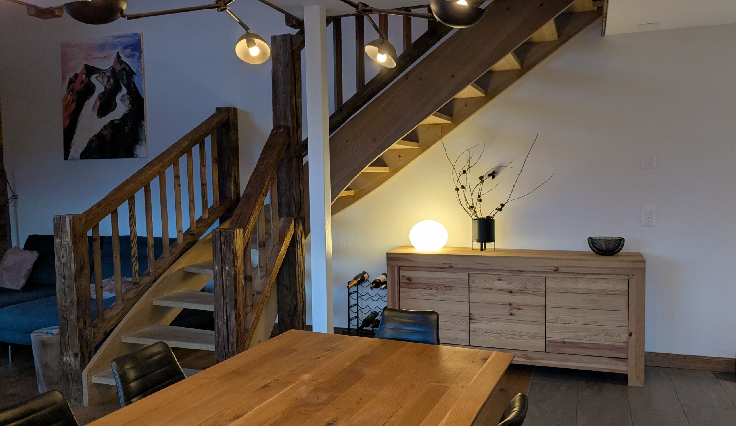 Magnifique appartement neuf 4*+ en duplex pour 10 personnes de 186 m2. Grand salon lumineux avec canapé-lit et une table à manger. Cuisine ouverte entièrement équipée avec micro-onde, four, lave-vaisselle, bouilloire, machine à café Nespresso et quatre plaques de cuisson en vitrocéramique. Espace de vie en mezzanine avec canapés, télévision compatible WiFi avec accès aux services de streaming, système de musique haute fidélité avec streamer musical Blue Node et enceintes Dali.