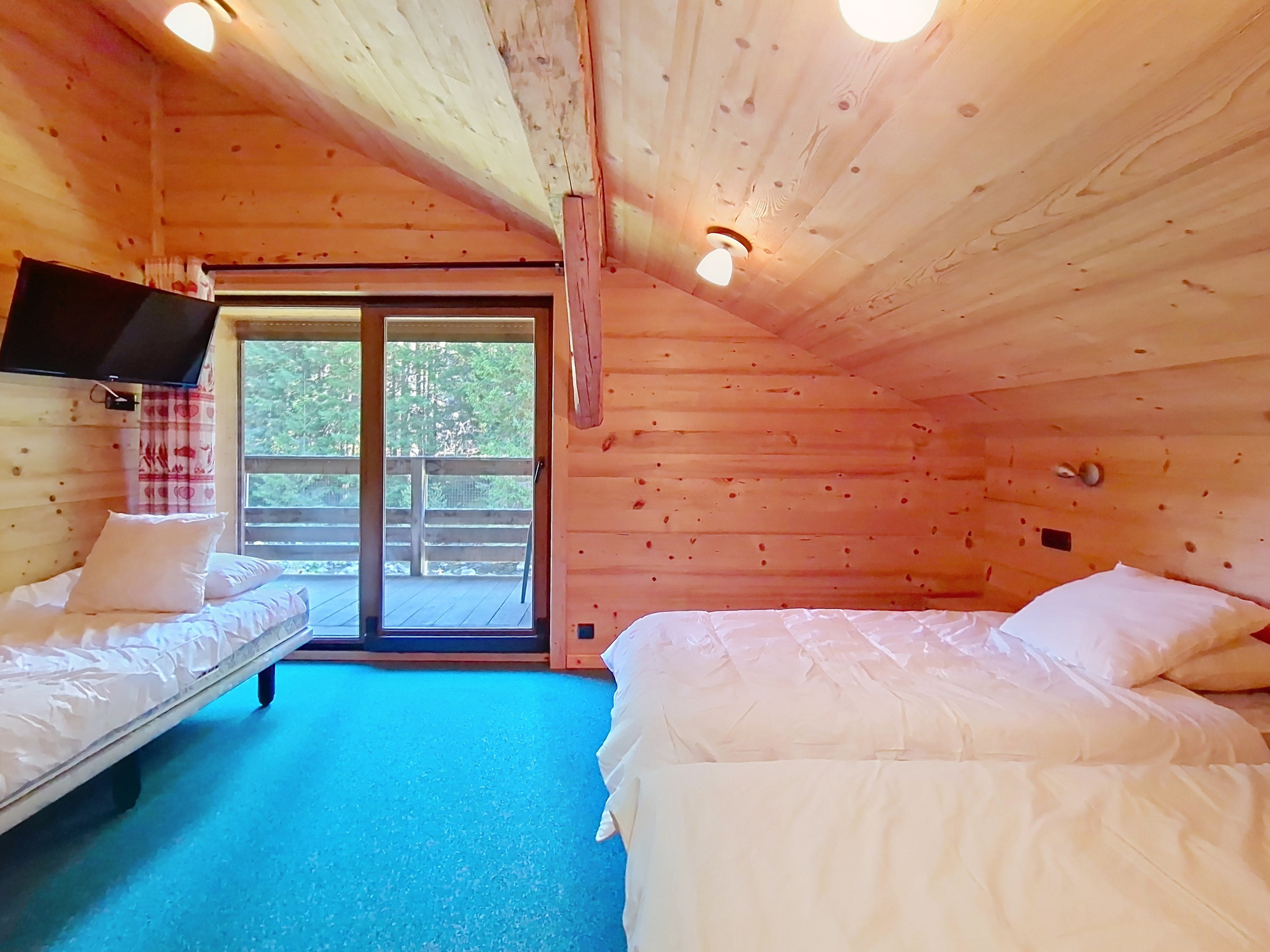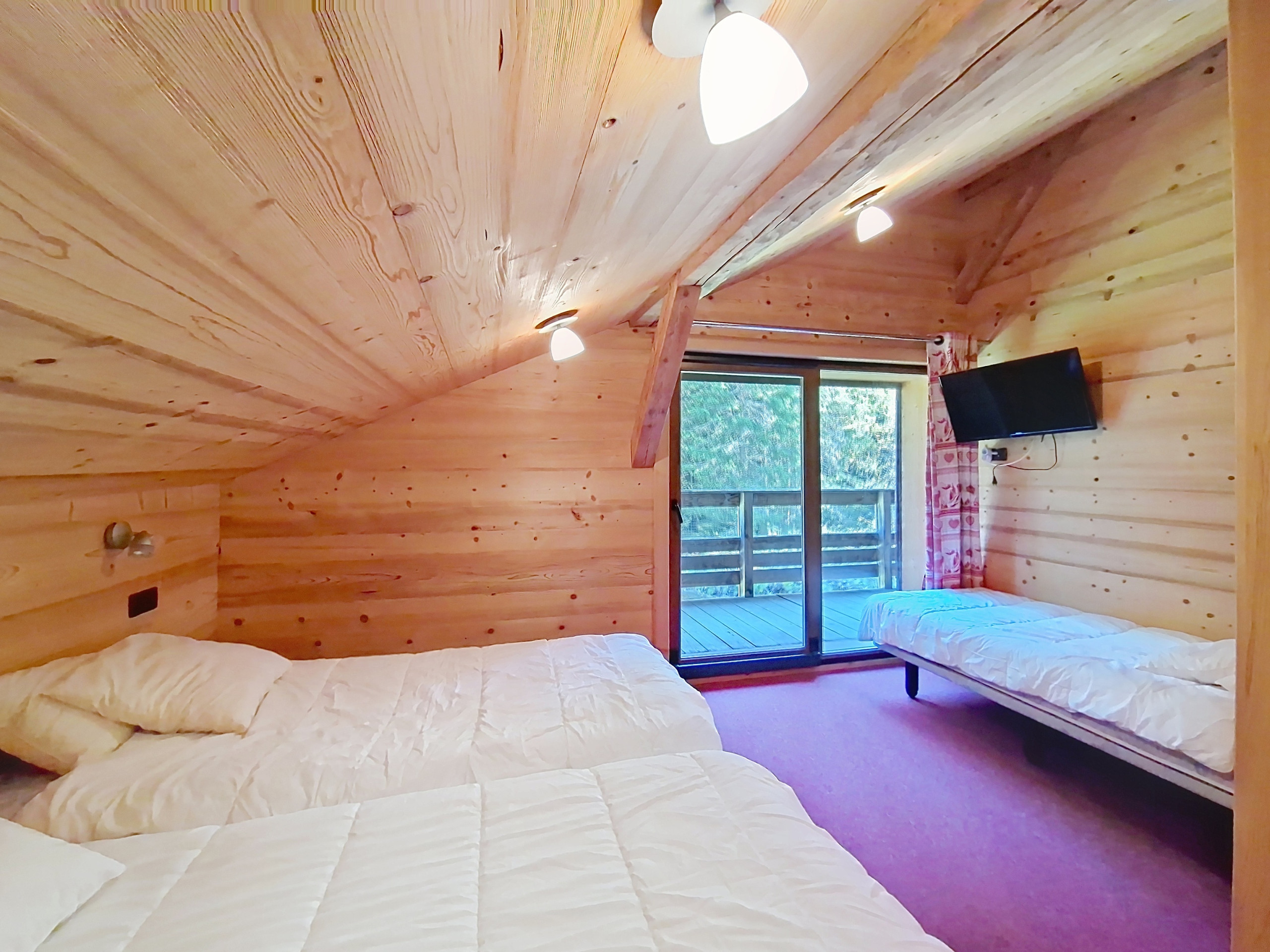 - Parking: 1x place de parking dans le garage et 1x place de parking extérieur devant le chalet