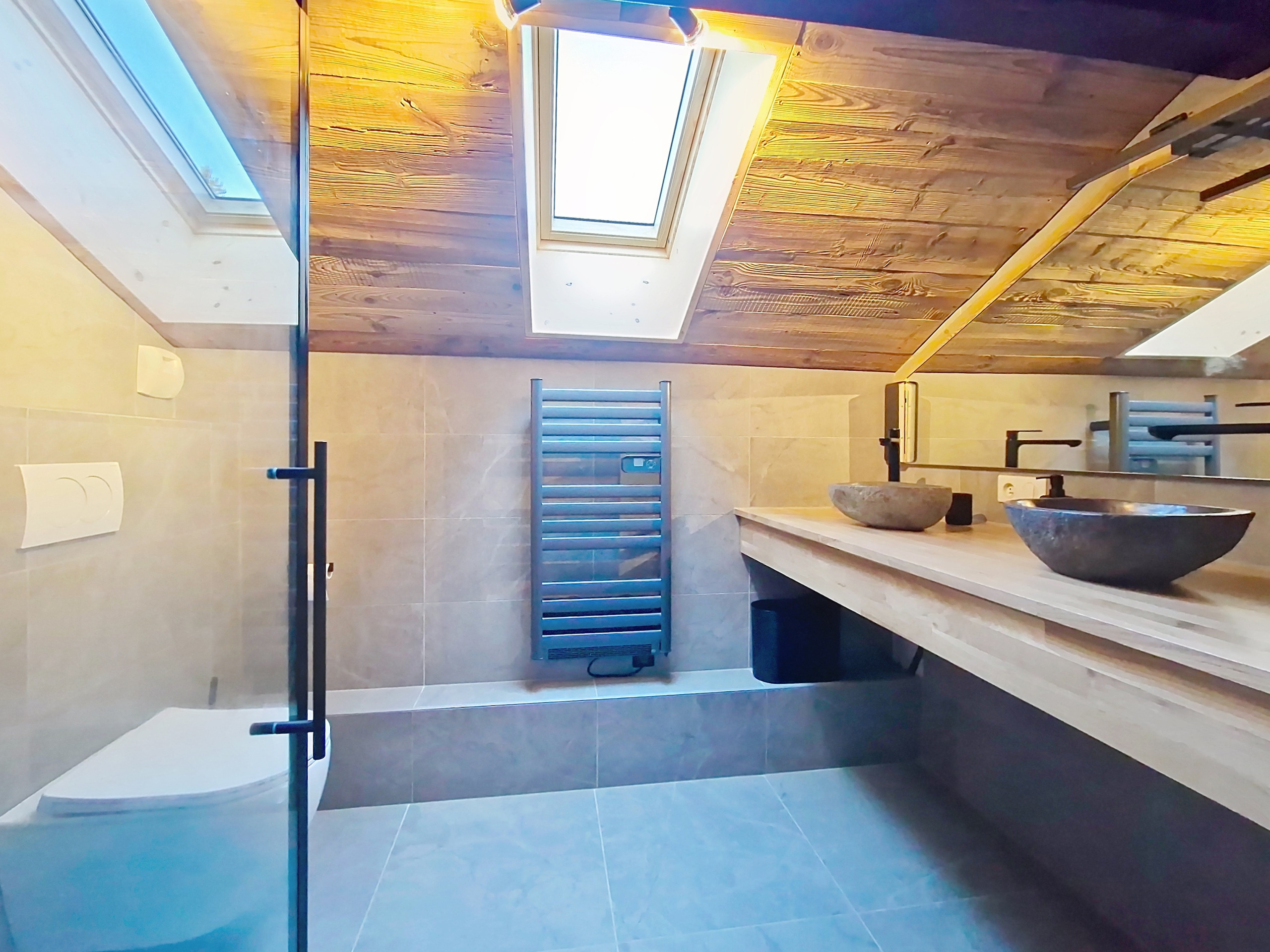 - Salle de bain rez-de-chaussée : 1x avec douche et WC séparés