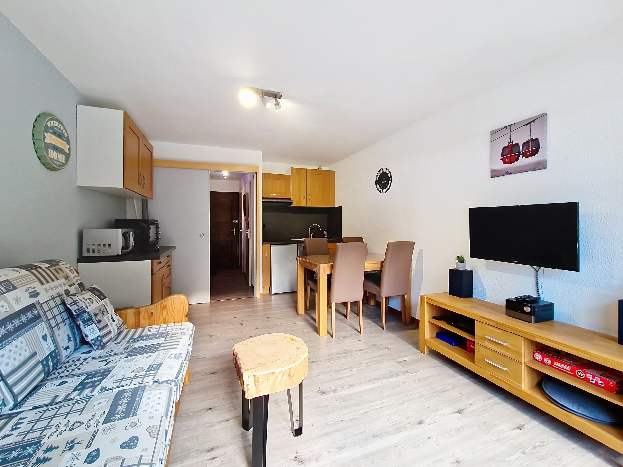 Appartement confortable 2* de 19 m2, au rez de chaussée. Séjour ensoleillé en période estivale, télévision à écran plat. Cuisine ouverte équipée avec plaques induction, frigo, cafetière filtre, bouilloire, four multifonction microonde et grille-pain.