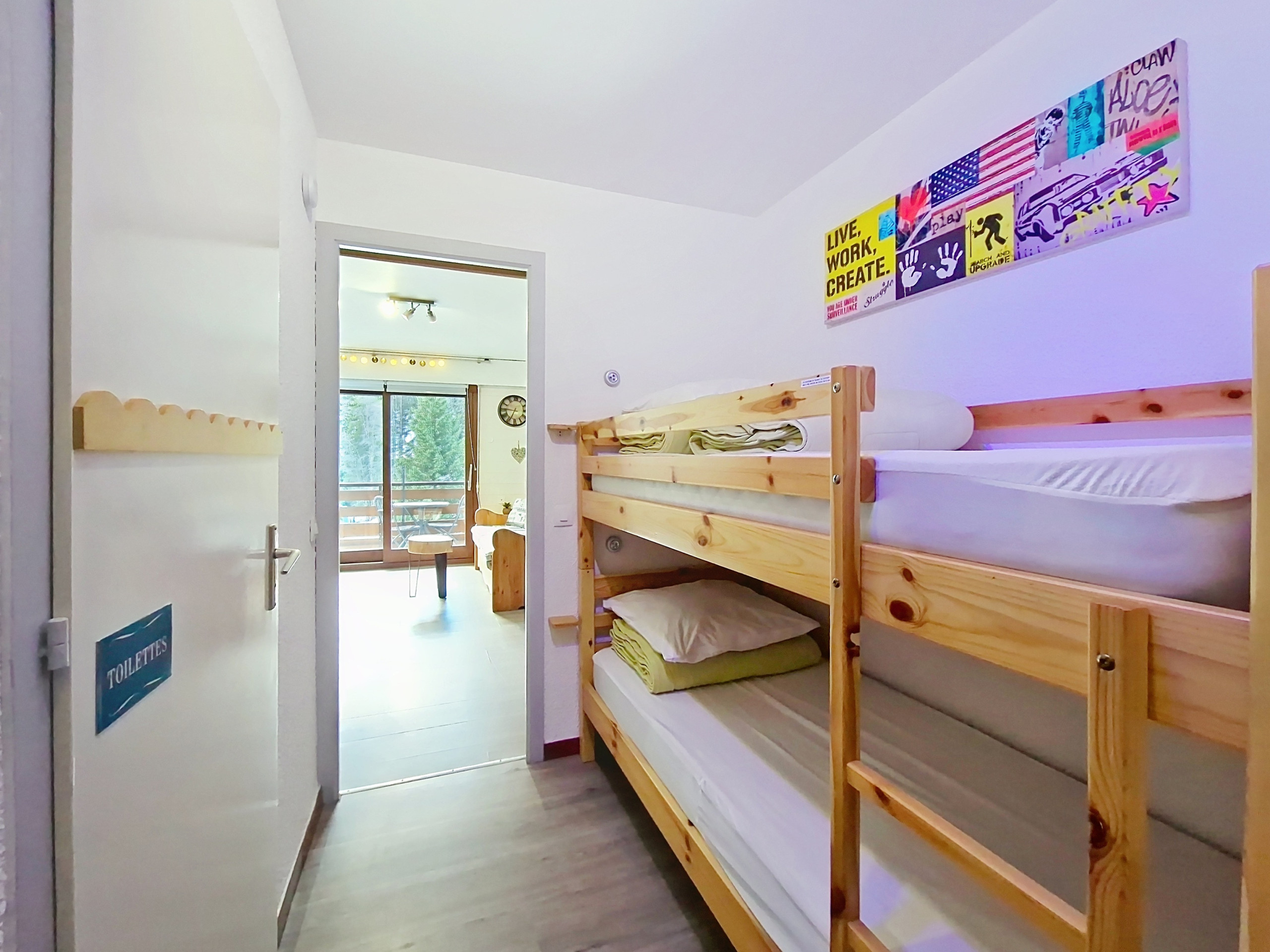 Vous êtes dans la résidence Les Portes du Soleil qui bénéficie d'une situation idéale. Cette résidence composée de 2 bâtiments et sur 5 étages offre un espace de vie cosy ainsi qu’une superbe vue sur les montagnes.