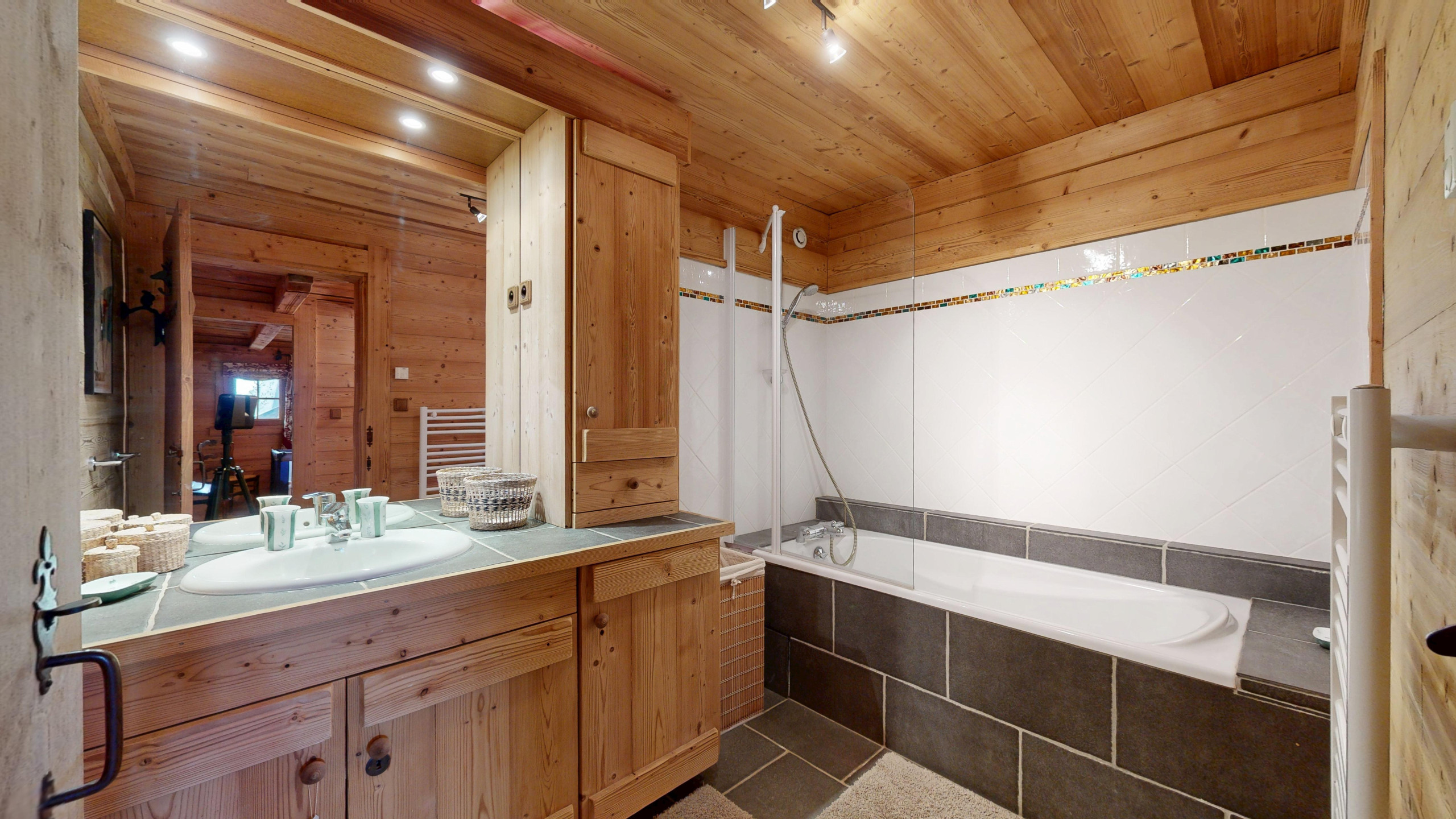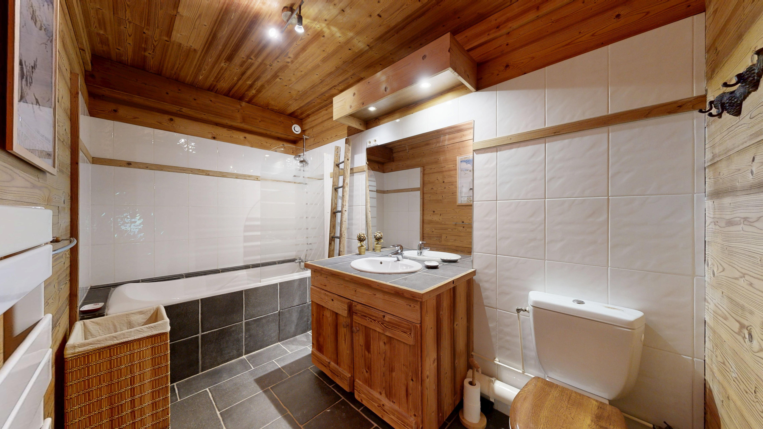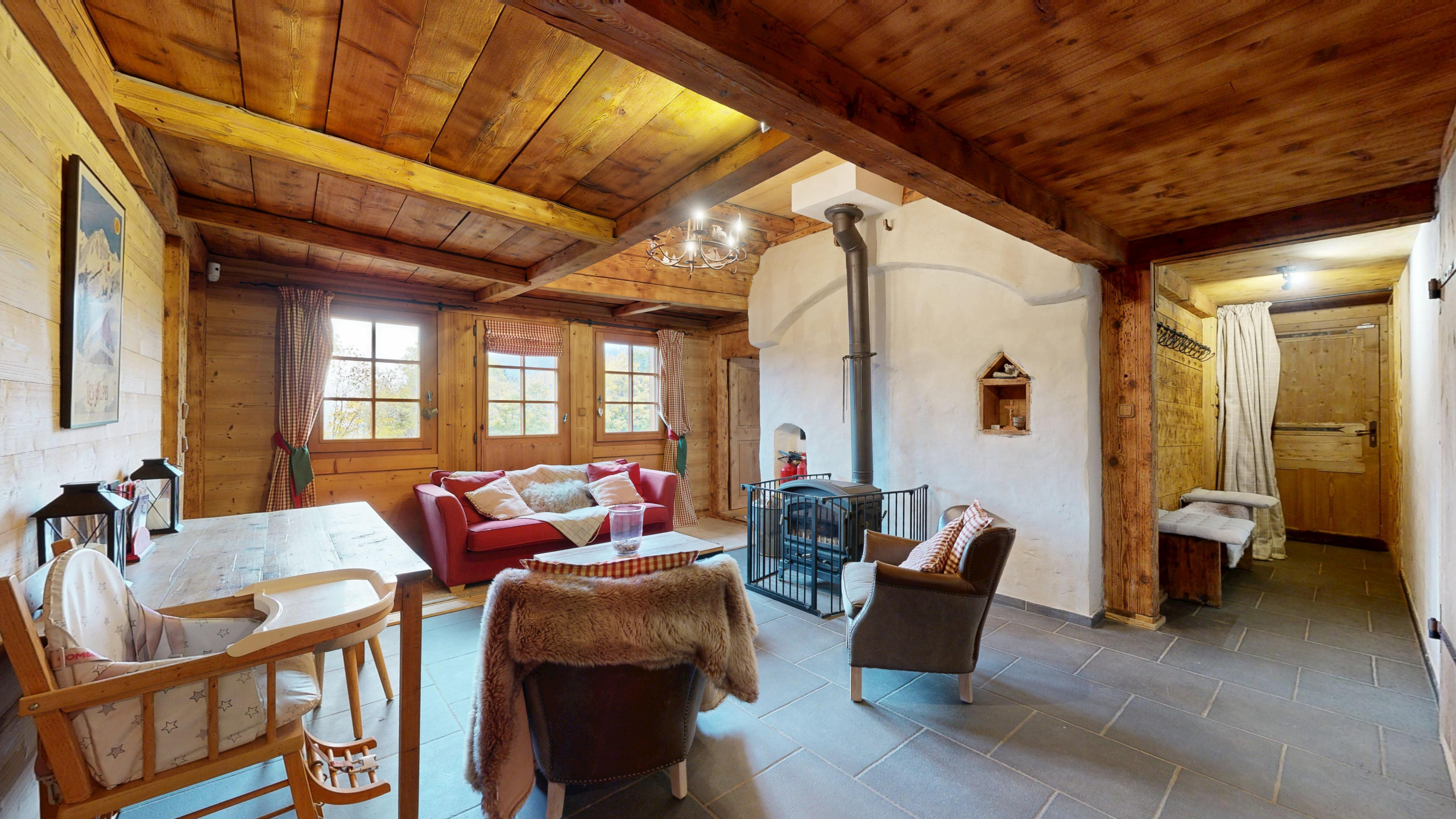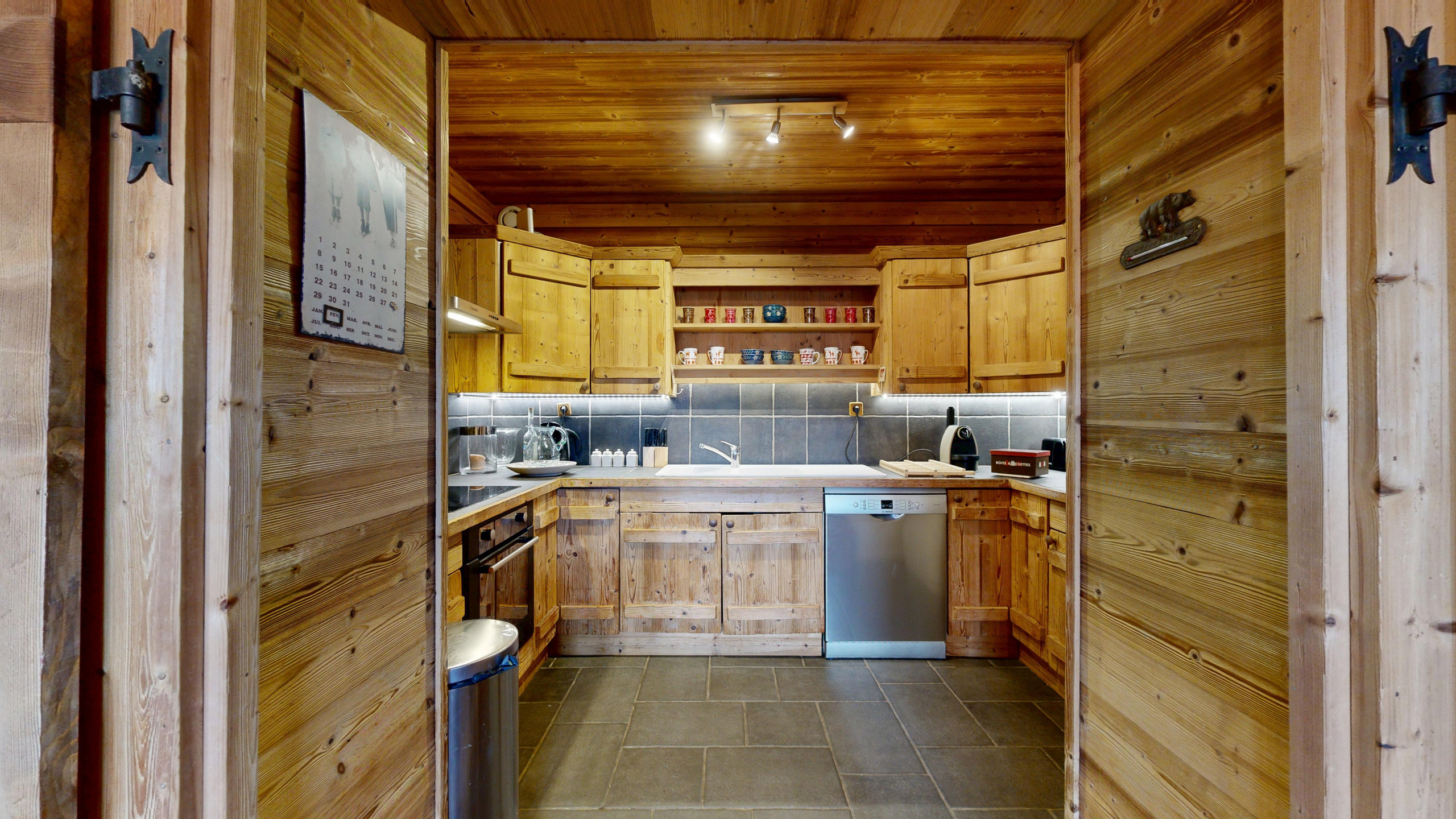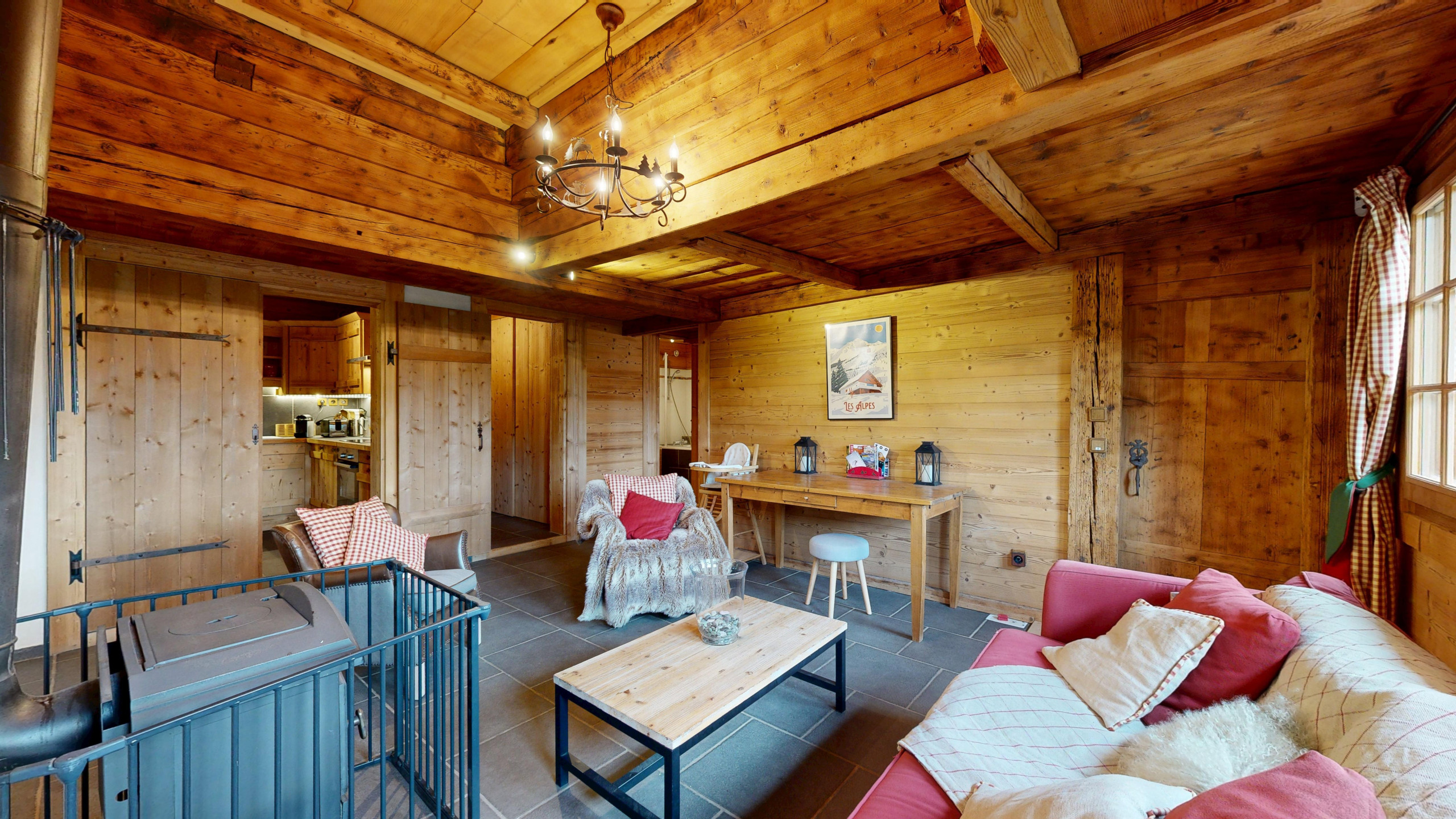 3-star apartment on the ground floor, immerse yourself in a mountain atmosphere in two bright and stylish living spaces, furnished with comfortable sofas, 2 libraries, and a Godin wood stove for cozy evenings. The two fully equipped kitchens are perfect for culinary enthusiasts, featuring modern amenities such as ceramic hobs, ovens, dishwashers, refrigerators, toasters, coffee makers, kettles, as well as a fondue set, raclette machine, pancake griddles, juicer, and a pierrade grill. Outside, there is a terrace and a large garden.