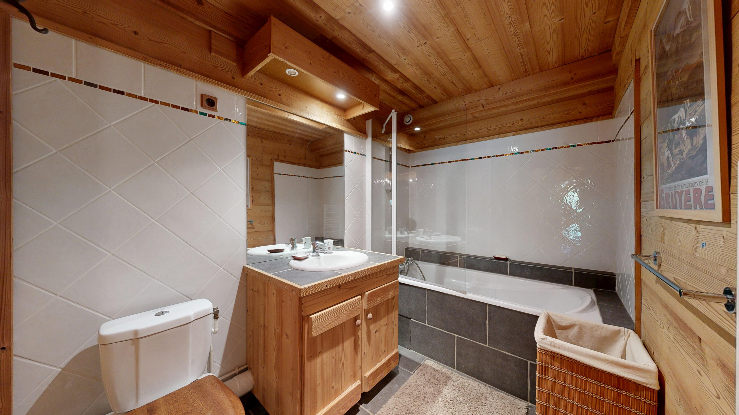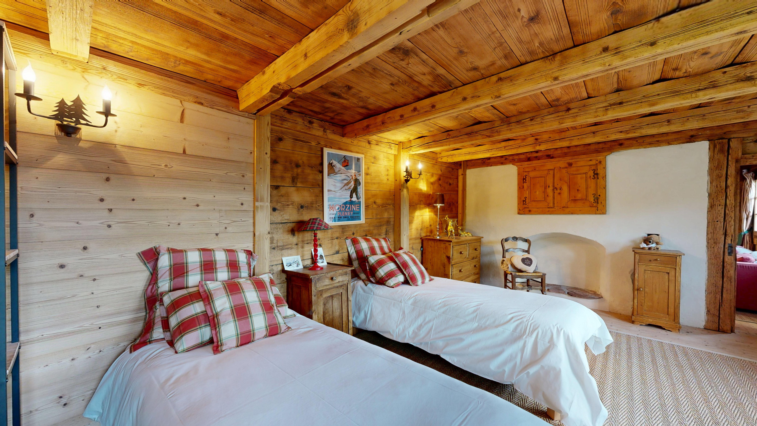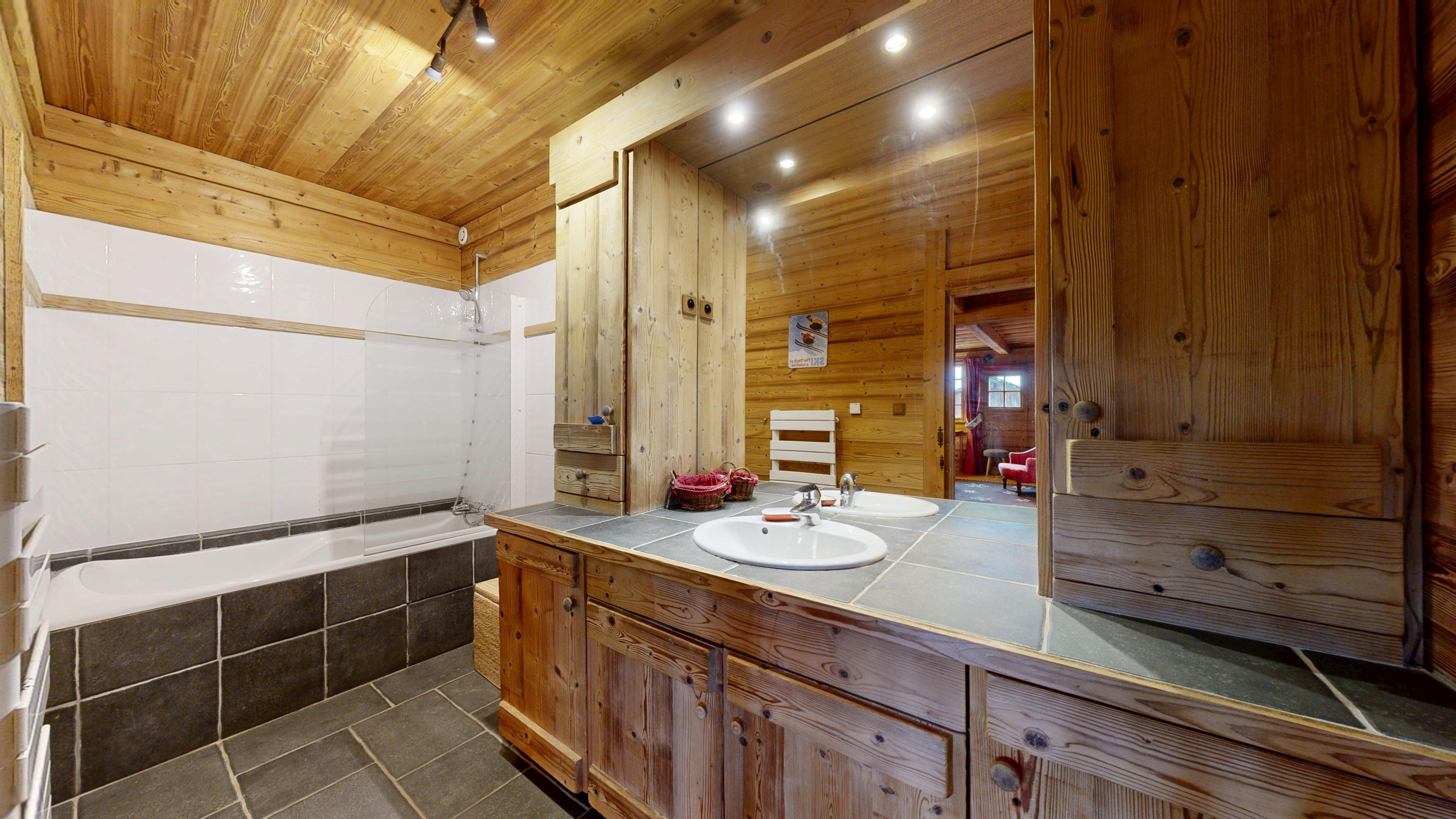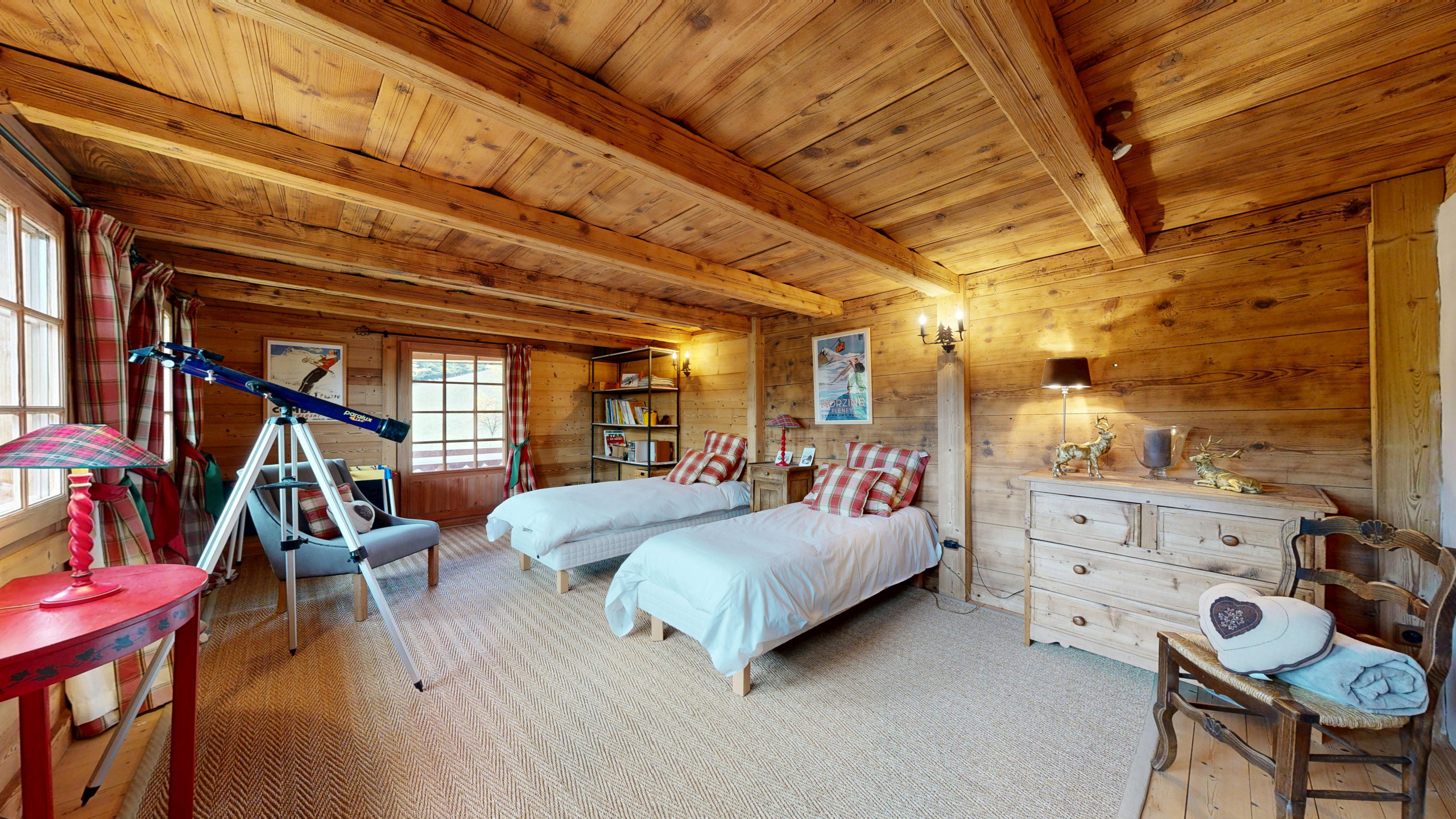 3-star apartment on the ground floor, immerse yourself in a mountain atmosphere in two bright and stylish living spaces, furnished with comfortable sofas, 2 libraries, and a Godin wood stove for cozy evenings. The two fully equipped kitchens are perfect for culinary enthusiasts, featuring modern amenities such as ceramic hobs, ovens, dishwashers, refrigerators, toasters, coffee makers, kettles, as well as a fondue set, raclette machine, pancake griddles, juicer, and a pierrade grill. Outside, there is a terrace and a large garden.