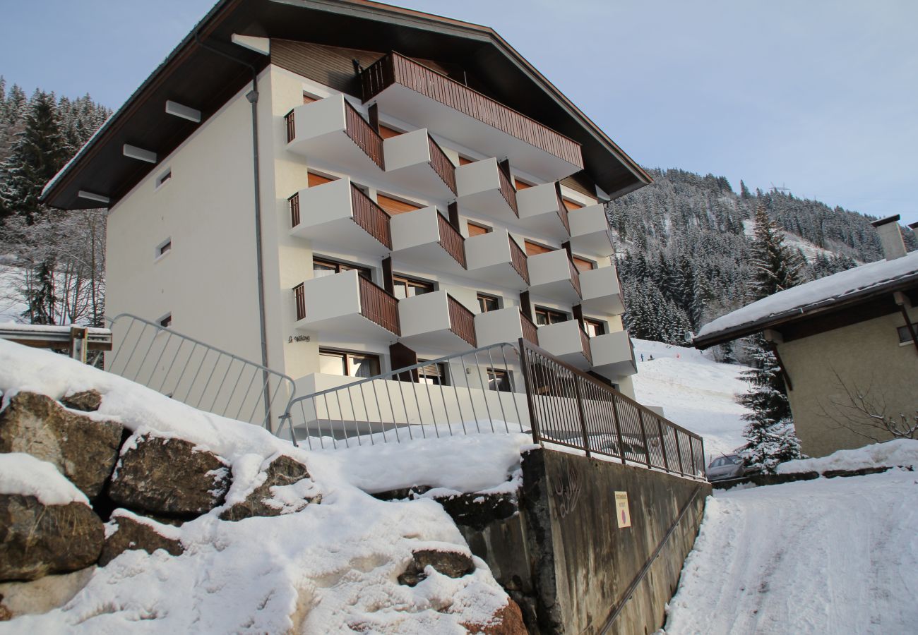 This is the Les Perthuis residence which enjoys an ideal location. This 3-story residence offers a cosy living space and superb mountain views.