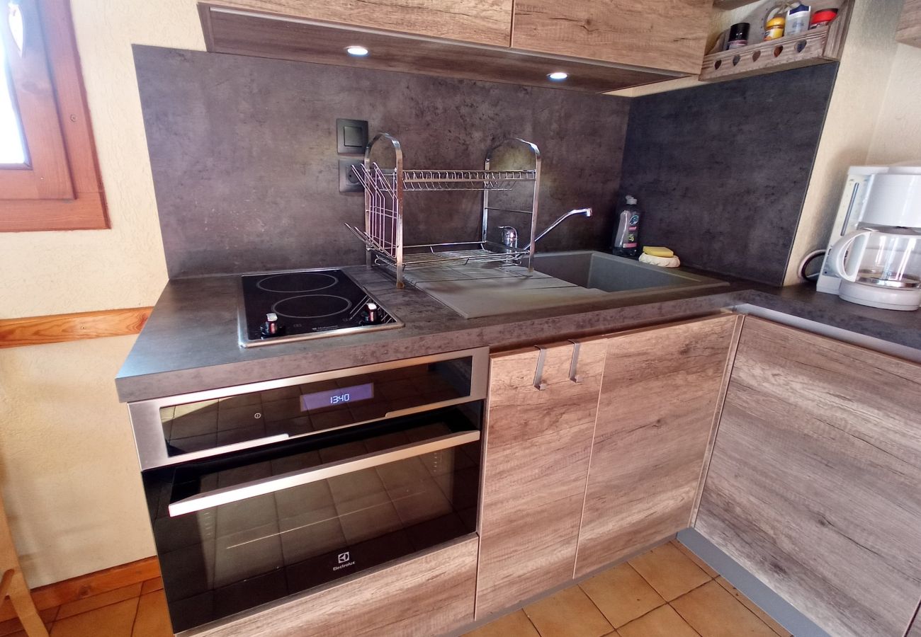 Comfortable 2* 24 m2 apartment on 1st floor. Sunny living room in summer, flat-screen TV. Open kitchen equipped with vitroceramic hob, fridge, dishwasher, Senséo coffee maker, kettle, oven, microwave and toaster.