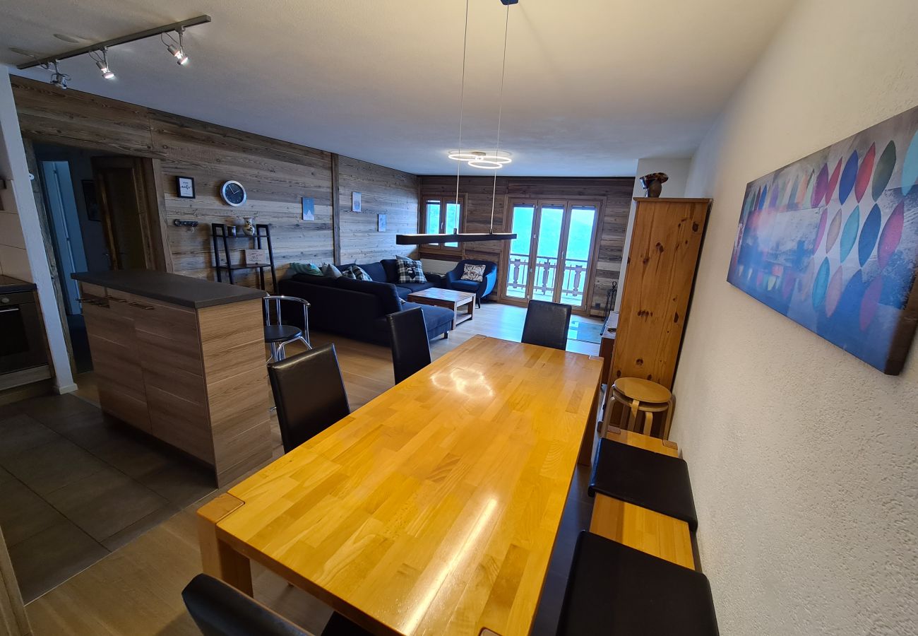 Sleep in this cosy apartment, in the center of the village, with breathtaking views of the valley and mountains. Located in Switzerland, in the resort of Veysonnaz in the heart of the 4 Vallées, you can stay there for up to 10 people.