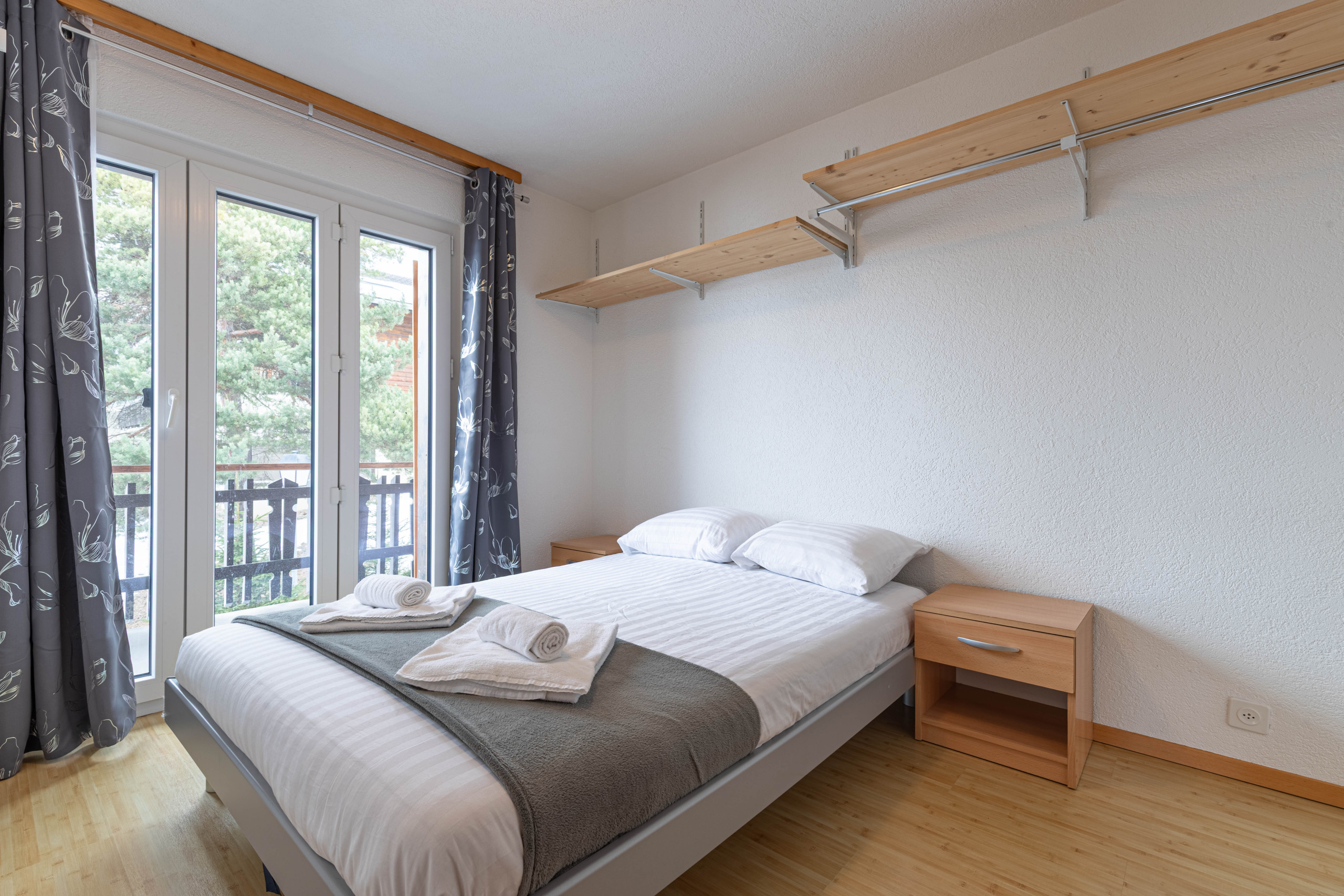 You are in the Les Mélèzes residence which enjoys a privileged location right next to the departure of the gondola, ideal for skiing holidays. And you are on the Bisse de Vex, which offers you a wonderful walk in summer. The resort center with its shops and restaurants is just 150 meters away. This residence consists of 2 buildings with several standard and comfortable apartments with lift. Access to the building is via stairs. Each apartment has a balcony or terrace offering a magnificent view of the Rhone Valley.