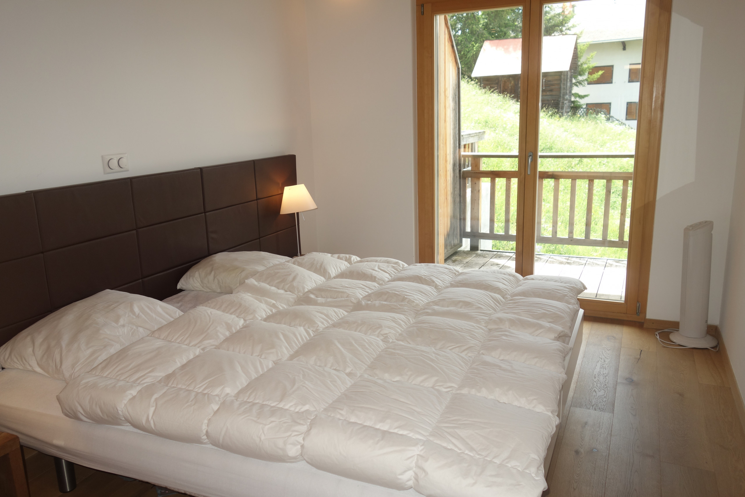 - Exterior: Corner balcony (Meinaz side) with view of Nendaz and the valley, with outdoor table and chairs