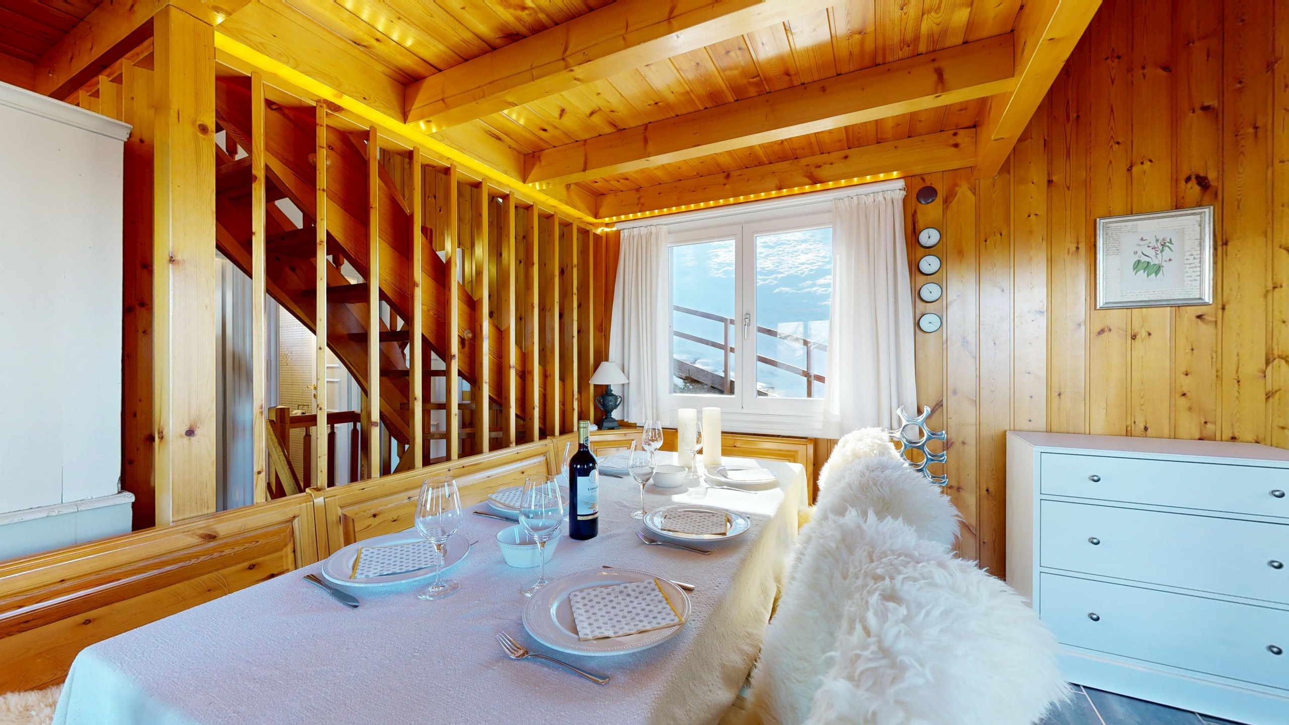 You are in a Fontannets chalet which enjoys a peaceful location in nature. This hamlet consists of 9 chalets that can accommodate up to 10 people each. Each chalet has a balcony and a terrace offering a magnificent view over the Rhone Valley.